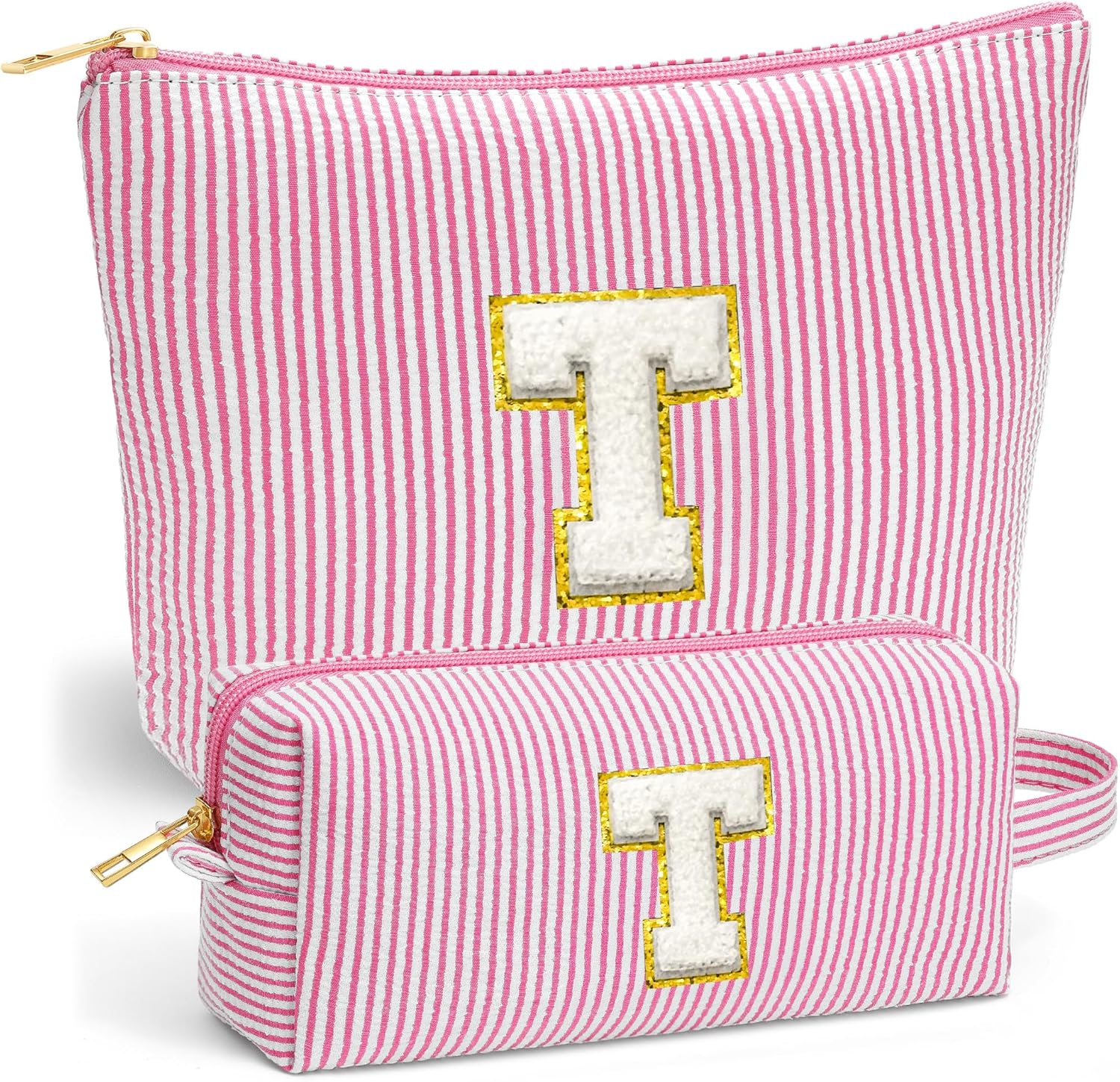 Initial Makeup Bag for Women - Travel Pouch, Portable Cosmetic Bag Make up Kit Pouch | Travel Essentials Cute Makeup Bag Birthday Gifts for Women, Pink Letter T