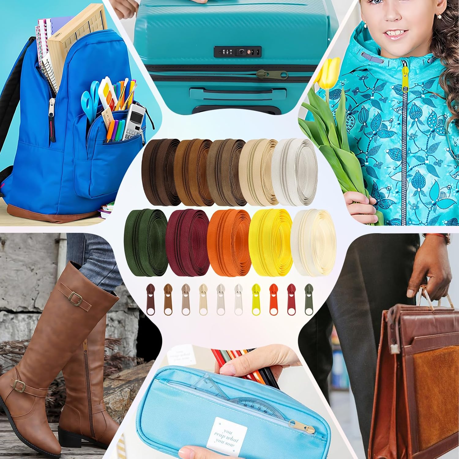 - Easy to use: these mixed sewing zips can be directly cut to the length you need and installed on bags, clothes, pants, school bags, pet supplies that need to be zippered, and can also be applied to repair and replace broken zippers so that they can be applied again.
