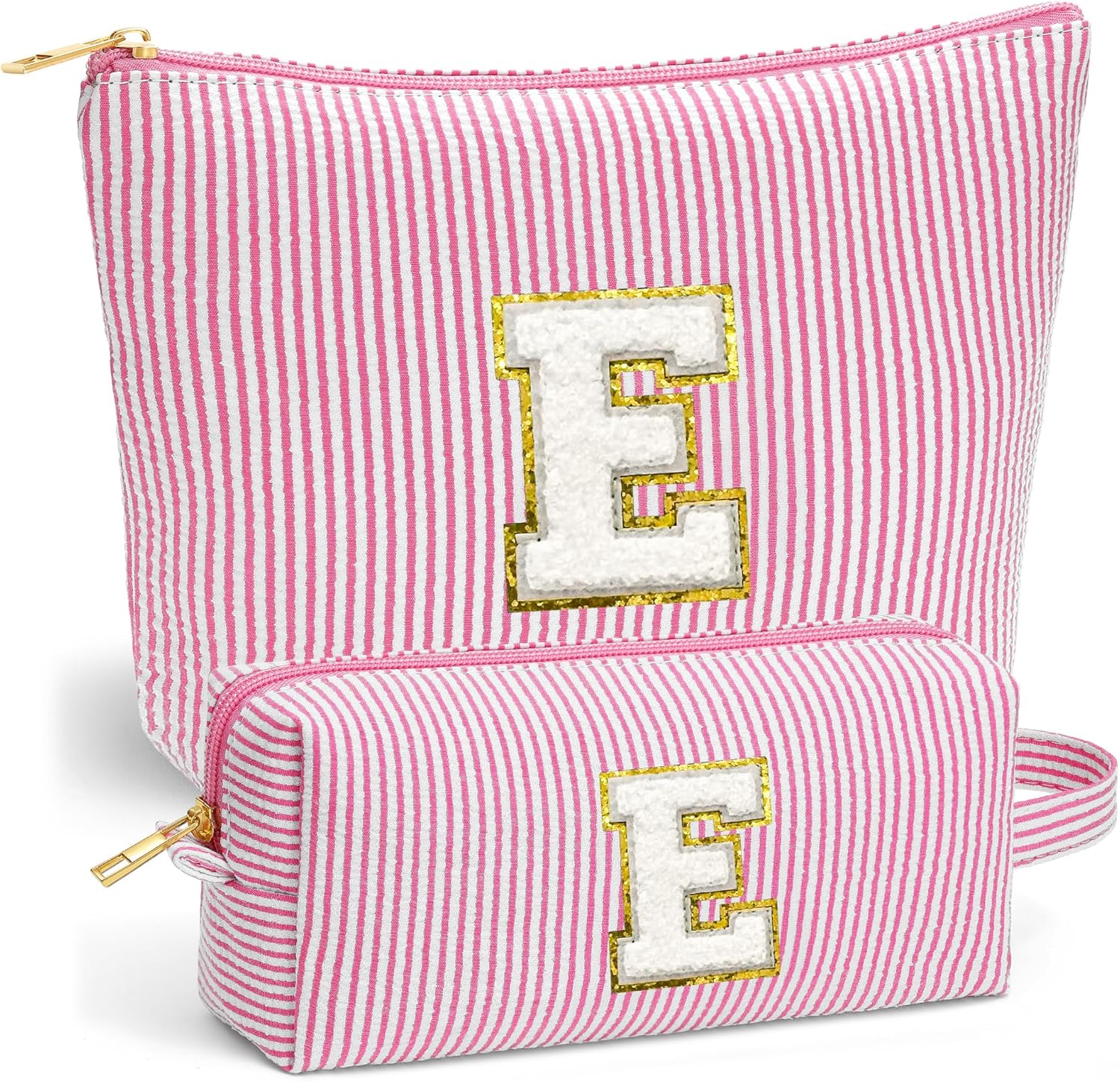 Initial Makeup Bag Set - Cute Pink Stuff for Women, Makeup Pouch Cosmetic Bag, Travel Essentials Toiletry Bag, Birthday Christmas Gifts for Women Stocking Stuffers, Pink Letter E