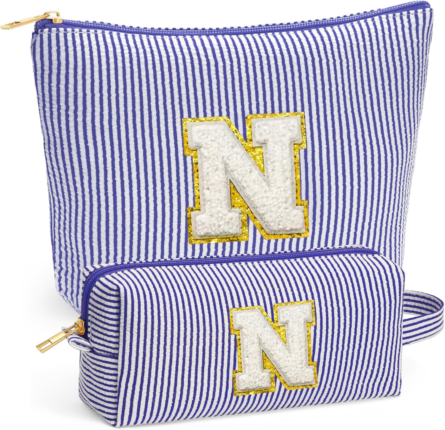 Initial Travel Toiletry Bag for Women - Travel Essentials, Travel Makeup Bag Small Cosmetic Make up Bag Cute Stuff Birthday Gifts for Women Mom Girlfriend Teacher, Blue Letter N