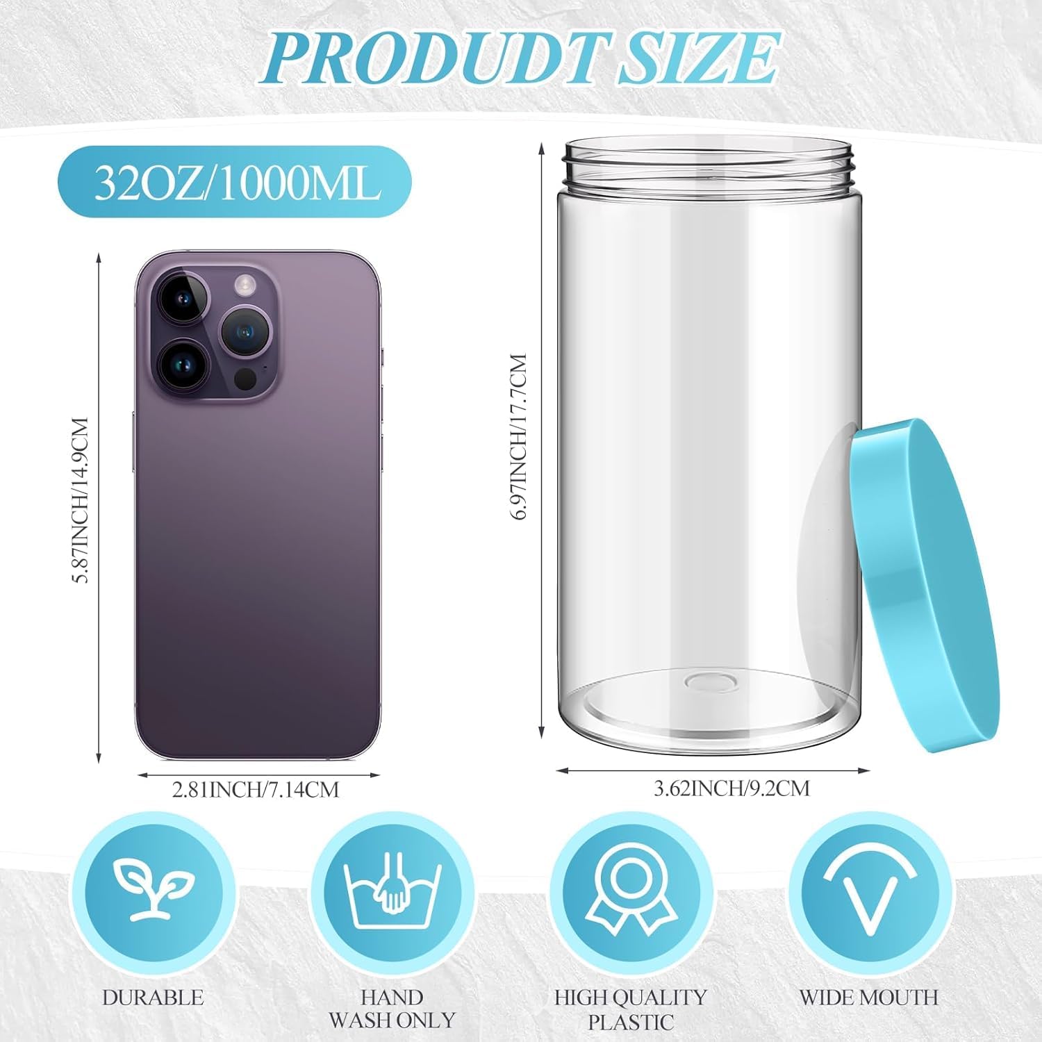 SATINIOR 12 Pack 32 oz Plastic Container Jars with Lids Round Clear Travel Cosmetic Container Slime Jars for Toiletries, Lotion, Cream, Ointments, Makeup, Rhinestone, Samples, Kitchen Storage(Blue)
