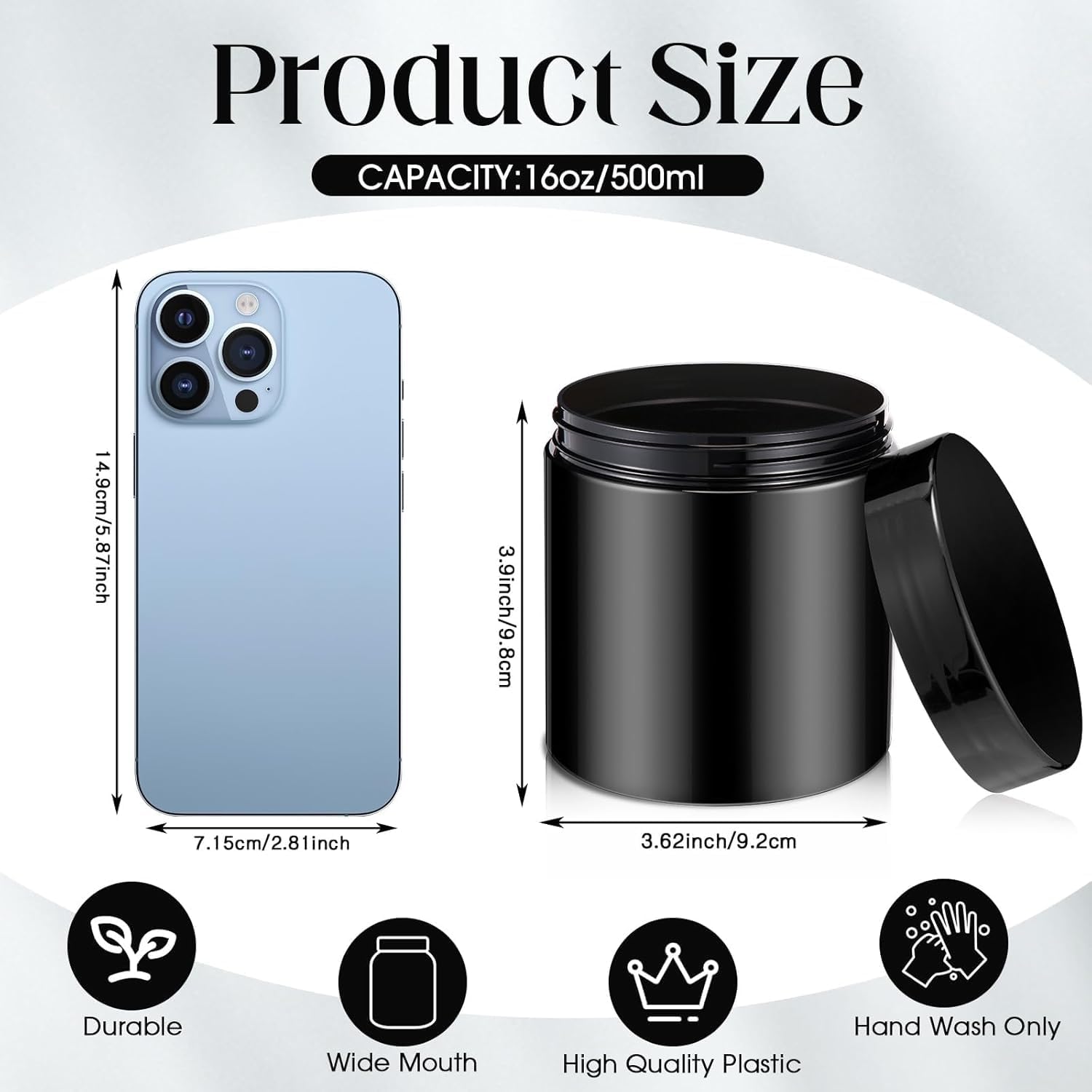 SATINIOR 12 Pack 16 oz Plastic Container Jars with Lids Round Clear Travel Cosmetic Container Slime Jar for Toiletries, Lotion, Cream, Ointment, Makeup, Rhinestone, Sample, Kitchen Storage(Pure Black)