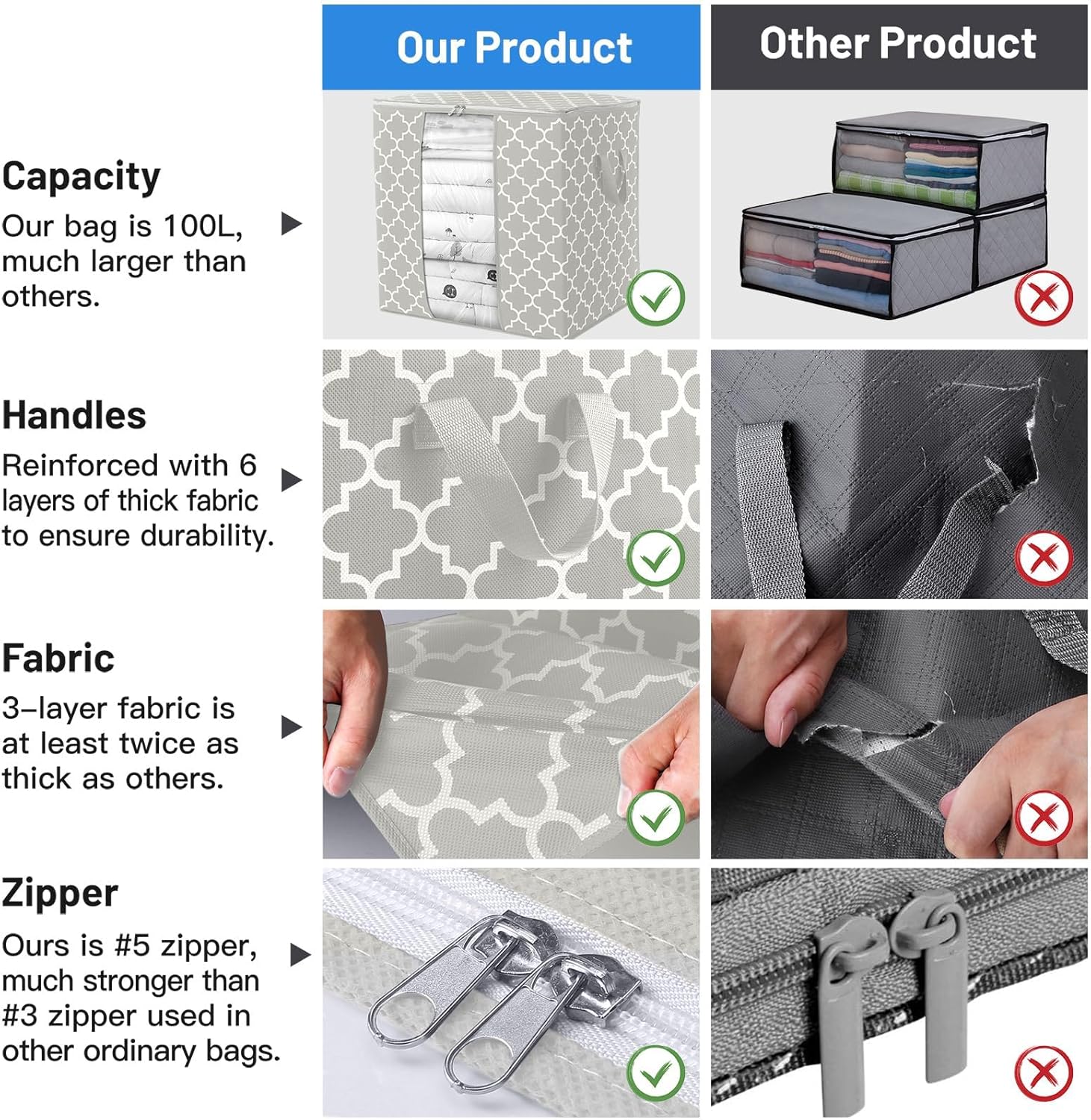 - Large Capacity: Each storage bag measures 20.5âx 20.5â x 14.6â / 52 x 52 x 37 cm , with 100L capacity; The organizer is spacious to store your comforters, pillows, bedding, blankets, plush toys, sweaters, out of season clothing or any other soft items;