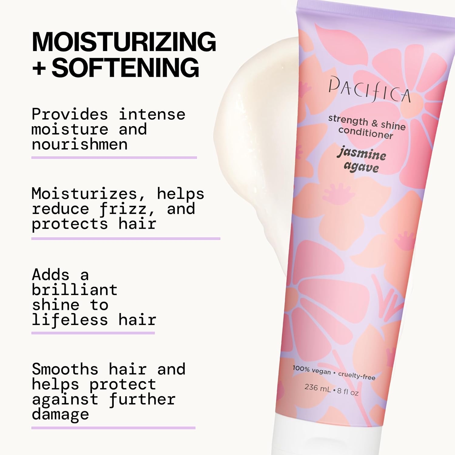 Jasmine Agave Strengthening Shampoo & Conditioner Set – Clean Vegan Shampoo & Conditioner for Weak Or Brittle Hair (Including Color-Treated), Stronger, Shinier Strands, No Silicones or Parabens