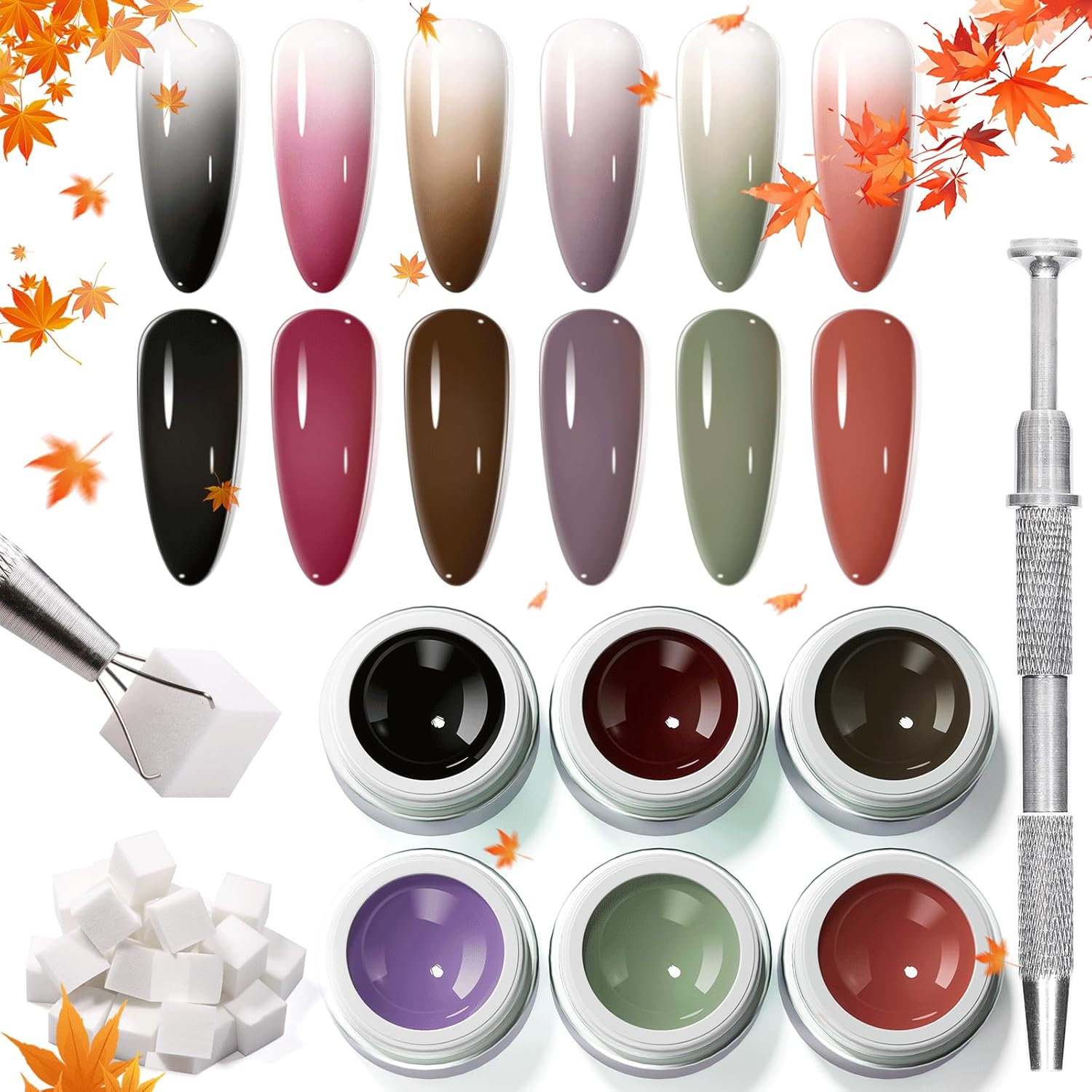 6 Colors Pat Painting Gel Polish Kit for Nails, Ombre Gradient Fall Winter Gel Nail Polish with 30PCS Sponge Applicators & Grabbing Pen,Nail Art for DIY French Manicure at Home
