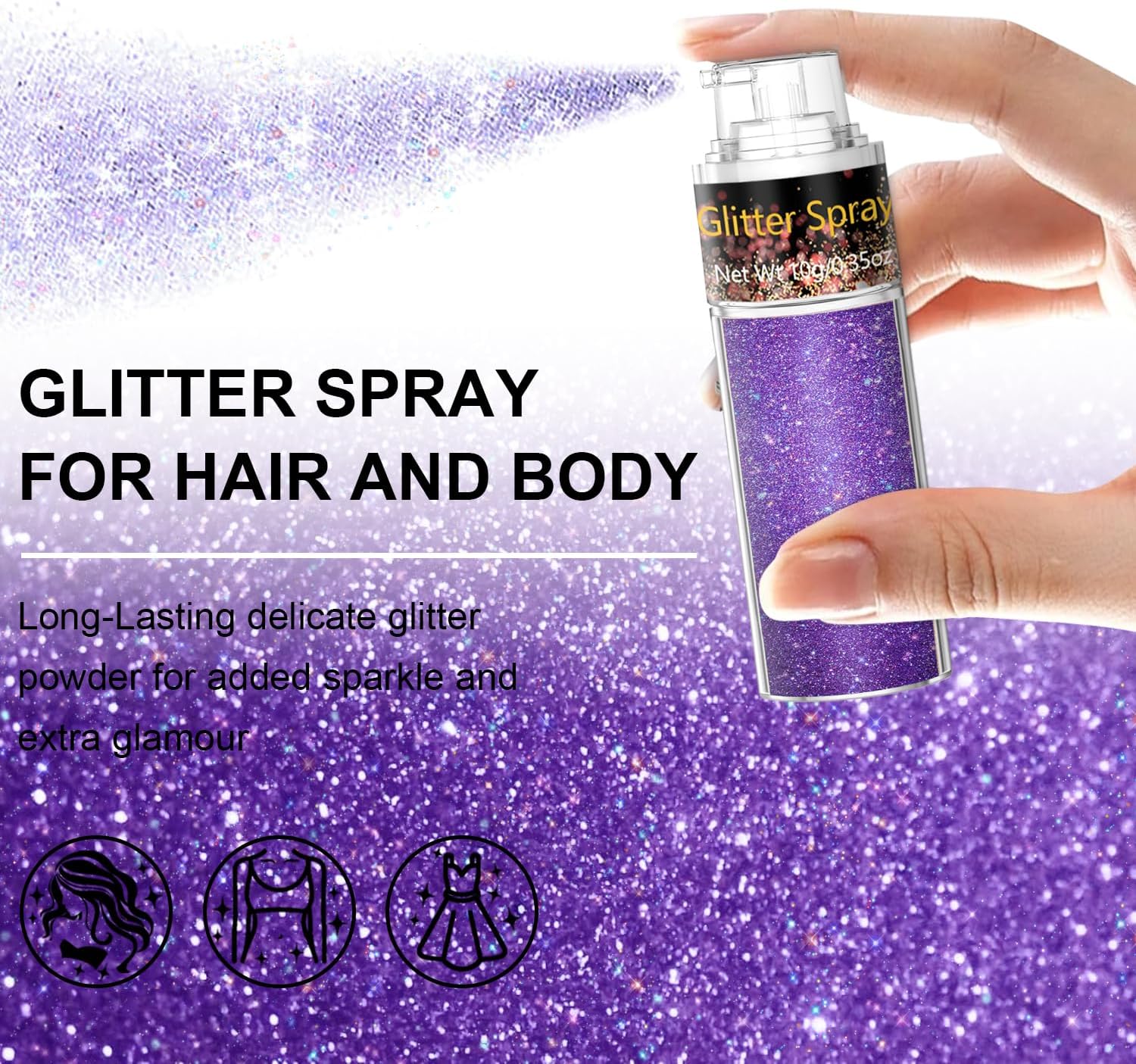 - 【Healthy Ingredients】Made with skin-friendly, non-toxic ingredients, this glitter spray is safe for women and girls. The lightweight, high-shine formula won’t irritate skin or hair. Plus, it’s cruelty-free and eco-conscious, so you can sparkle guilt-free!