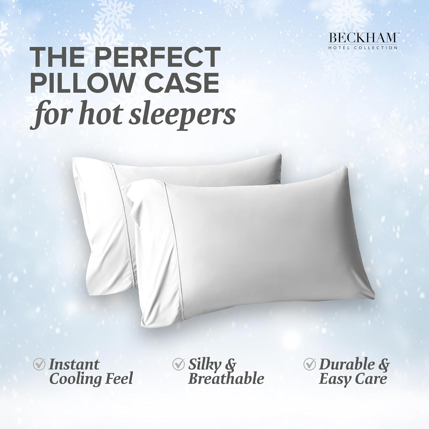 Beckham Hotel Collection Cooling Pillowcases for Hot Sleepers, Standard/Queen Size Set of 2, Cool Bedding, Envelop Closure, Silky Soft, Breathable, Moisture-Wicking, White
