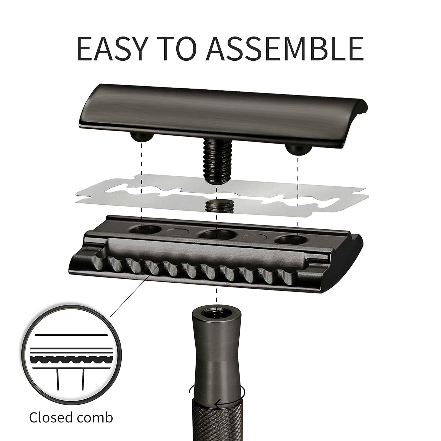 - ECO-FRIENDLY: Disposable plastic razors are unrecyclable, especially the cartridges. With this mens safety razor, you only need to replace the double edged razor blades. The perfect razor for eco-friendly shaving.