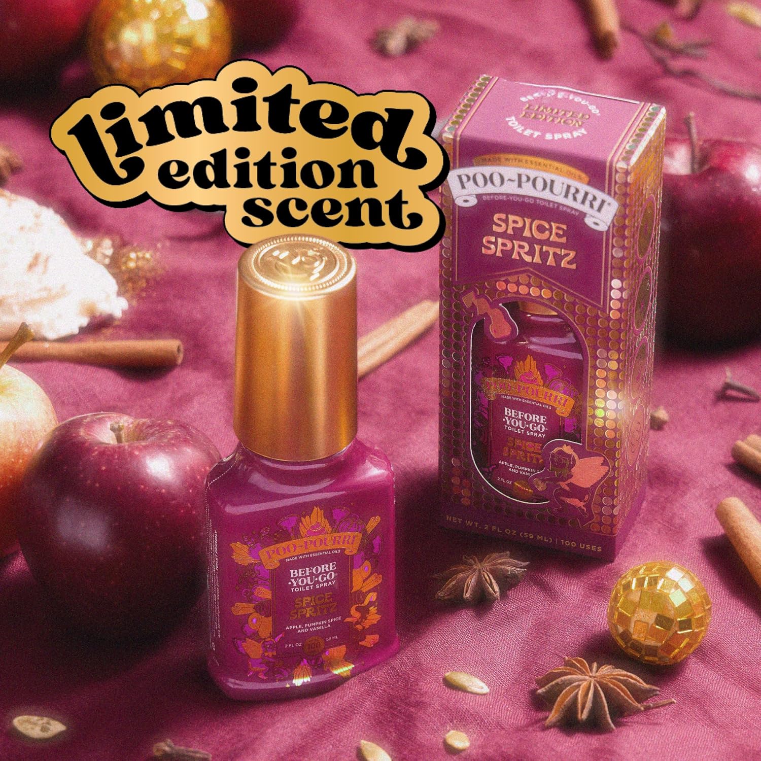 Poo~Pourri Spice Spritz 2oz Before-You-Go Toilet Spray - Instantly Trap Bathroom Odor - Plant Based Ingredients & Essential Oils - No synthetic fragrance - Apple, Pumpkin Spice, and Vanilla Scent