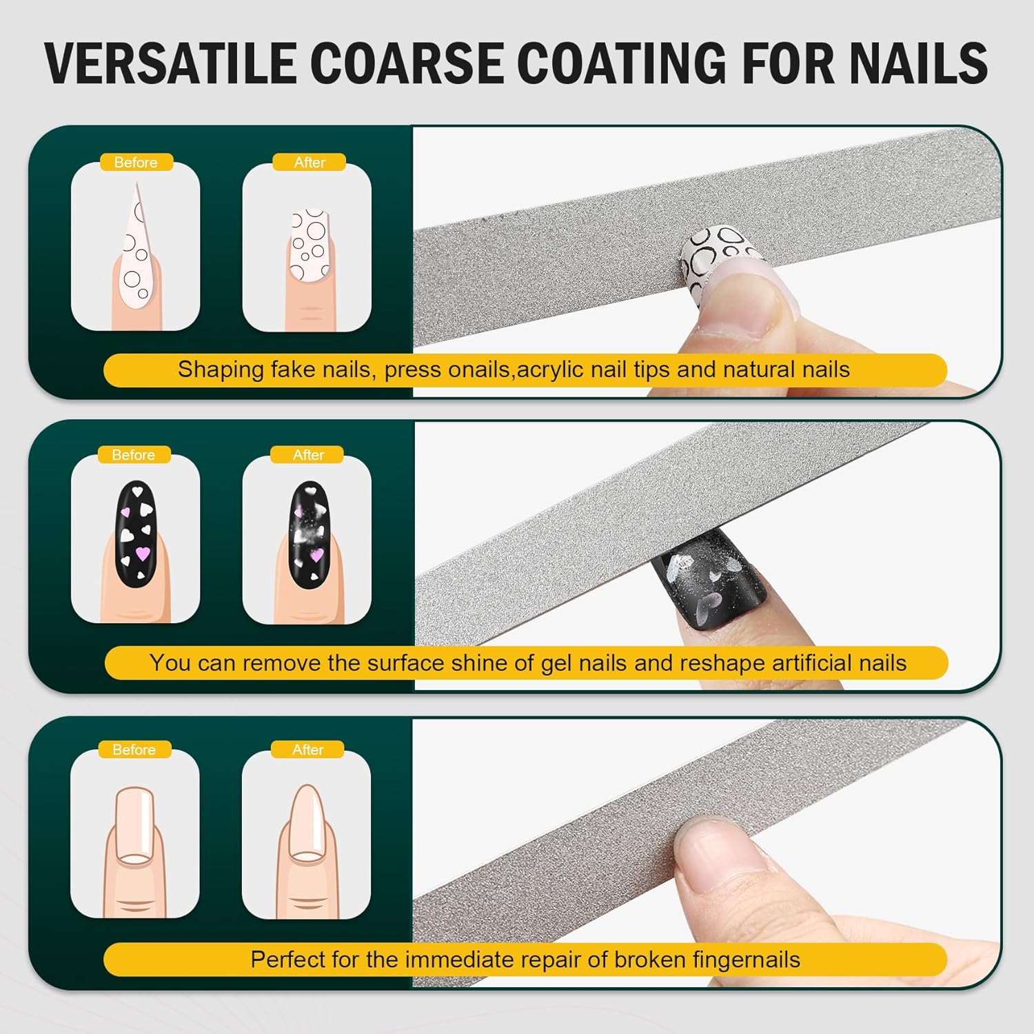 - ✅ Double-Sided Precision Filing – The FVION nail file set features two different grits in one tool. The coarse side quickly shapes and grades nails, while the fine side smooths and finishes for a flawless look. This metal nail file effortlessly shapes and refines nails with professional results.