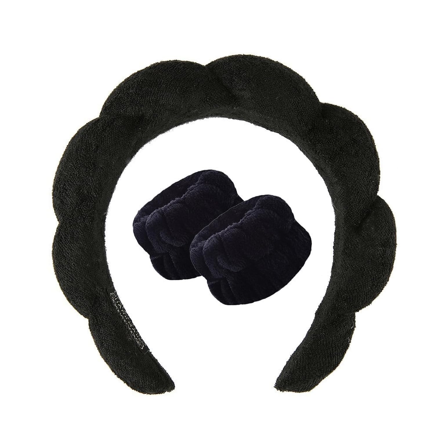 Spa Headband and Wristband Set for Women,Terry Cloth Sponge Headband for Washing Face,Makeup,Facial Mask and Skincare (Black,Blue, One Size)