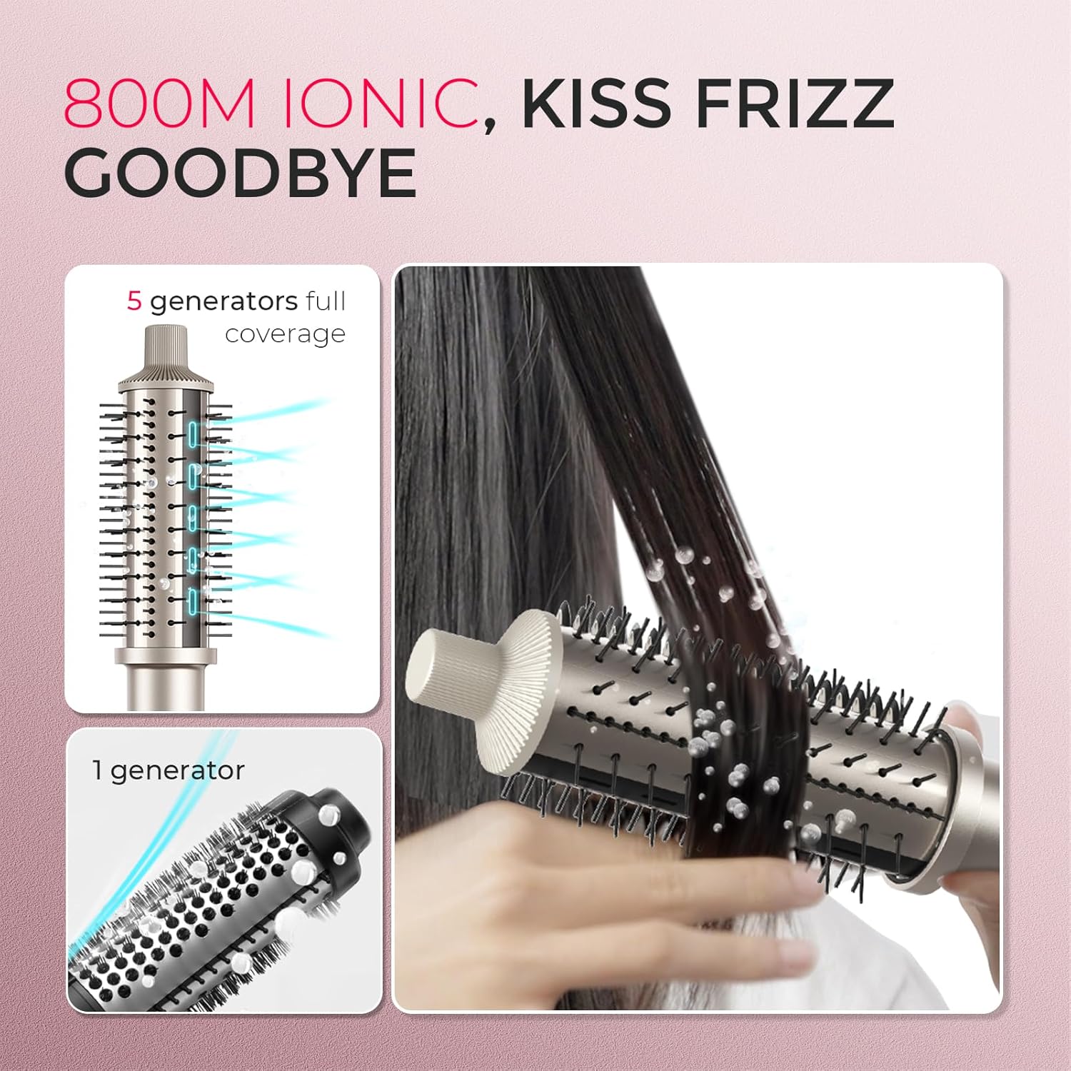 - 5 TEMP SETTINGS & REAL TIME DISPLAY - This thermal curling brush has 5 temp settings (250°F-395°F). Safely customize heat for fine or thick hair, no scorching. Precise temp display instead of the traditional blurry setting. It also has temp memory, no need to reset next time. This thermal blowout brush will automatically turn off after 30 minutes and emit a buzzing sound when heating is complete. NOTE: Start at the lowest setting (250°F) to find your perfect heat for fine/ thick/long/short hair