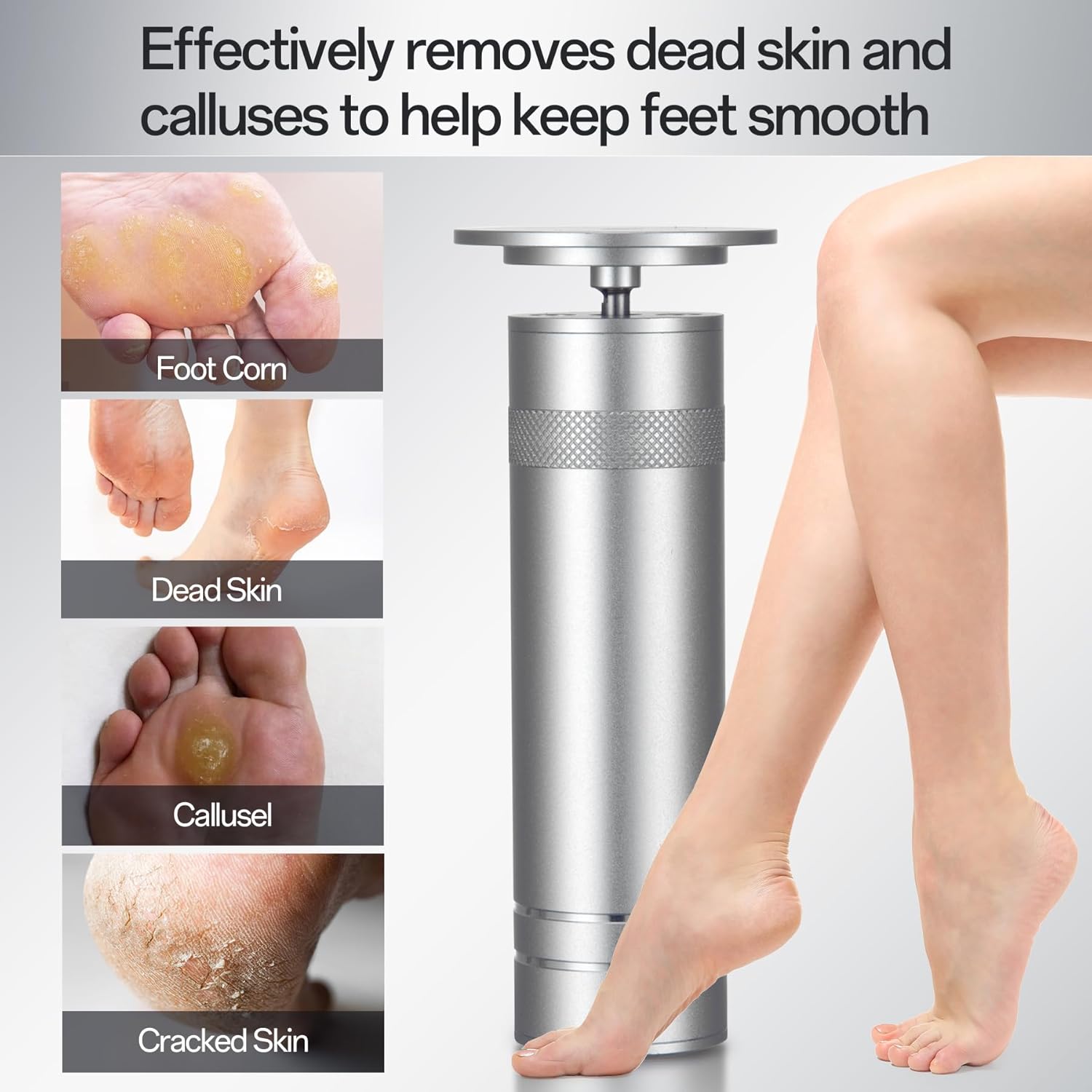 - 【Durable Aluminum Design】:The callus remover comes with featuring a sleek aluminum alloy body. giving the machine a sleek finis.Compact and comfortable size, easy to hold and use in anywhere.