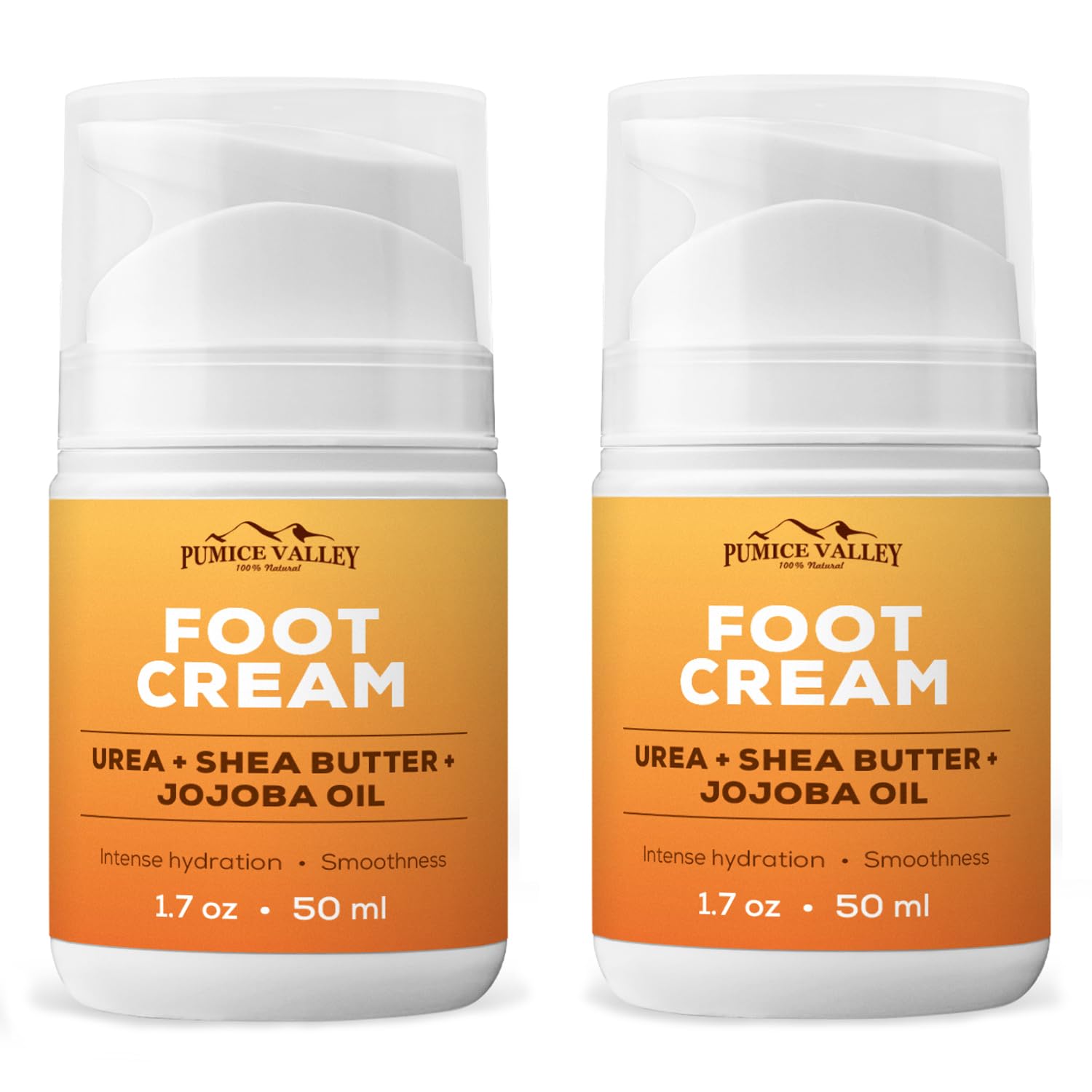 Pumice Valley 2 Pack Foot Cream for Dry Cracked Feet and Heels - Natural Moisturizer, Corn, Calluses Treatment - Skin, Body Lotion, Urea, Shea Butter, Jojoba Oil, Vitamin E 1.7 Oz