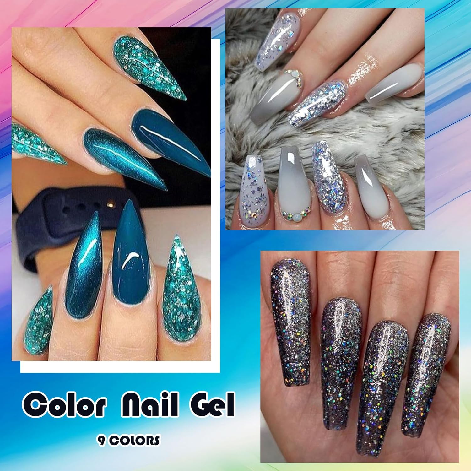 - What You Get: 9 Colors Gel Nail Polish + 3PCS Function Gel (0.25oz/7ml each bottle). 9 colors beautiful shades of popular and trendy colors suitable for all seasons and daily routine life!
