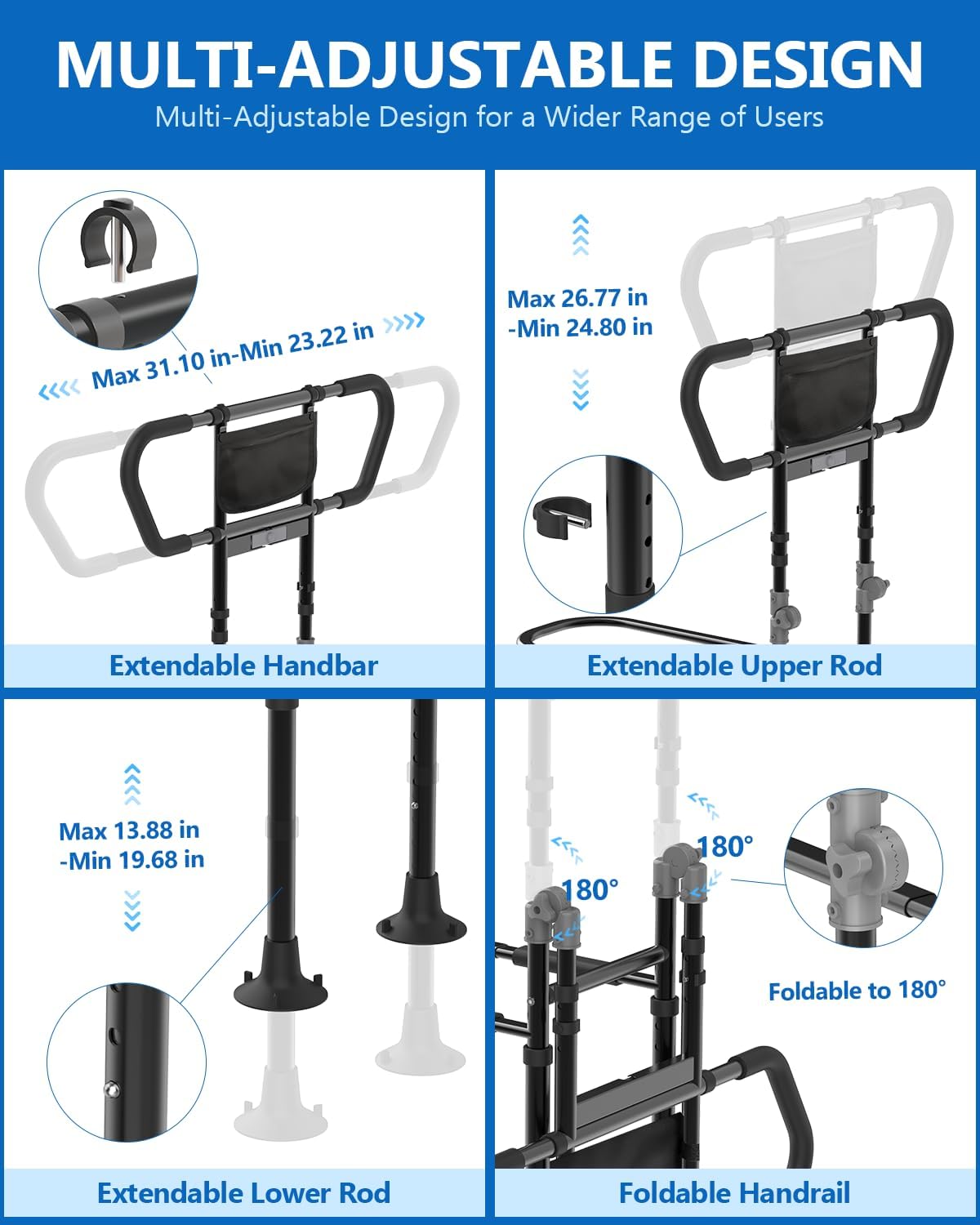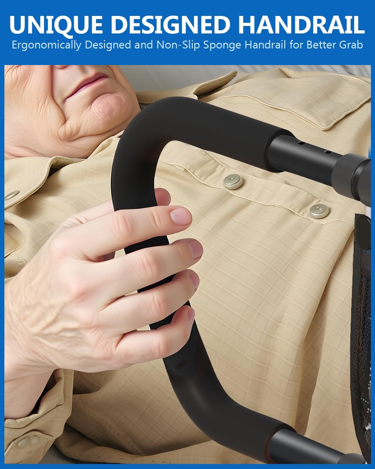 - Fully Adjustable Design: Telescoping handbar (23.22"â31.10") and rods (upper 24.80"â26.77", lower 13.88"â19.68") fit most bed sizes. Foldable 180° handrail for easy storage and transport.