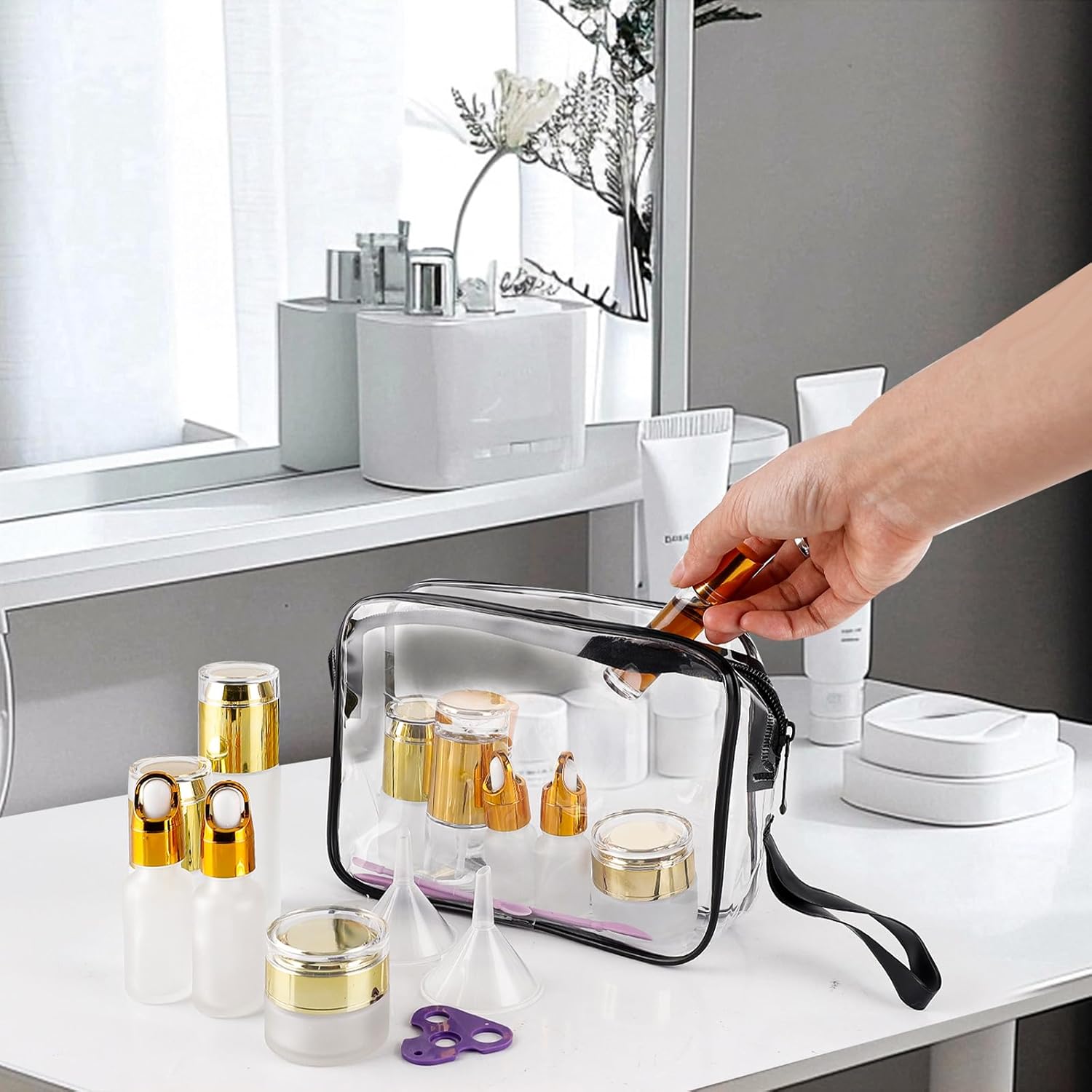 - TSA-APPROVED & SECURITY-FRIENDLY – Travel with confidence using these TSA-approved travel bottles, designed to meet airline regulations for carry-on liquids. The glass travel bottles for toiletries come in a TSA-approved toiletry bag, making airport security checks quick and hassle-free. With a simple and stylish design, Perfect to pack small travel containers for foundation, oil, serum, cream, makeup, & moisturizer.