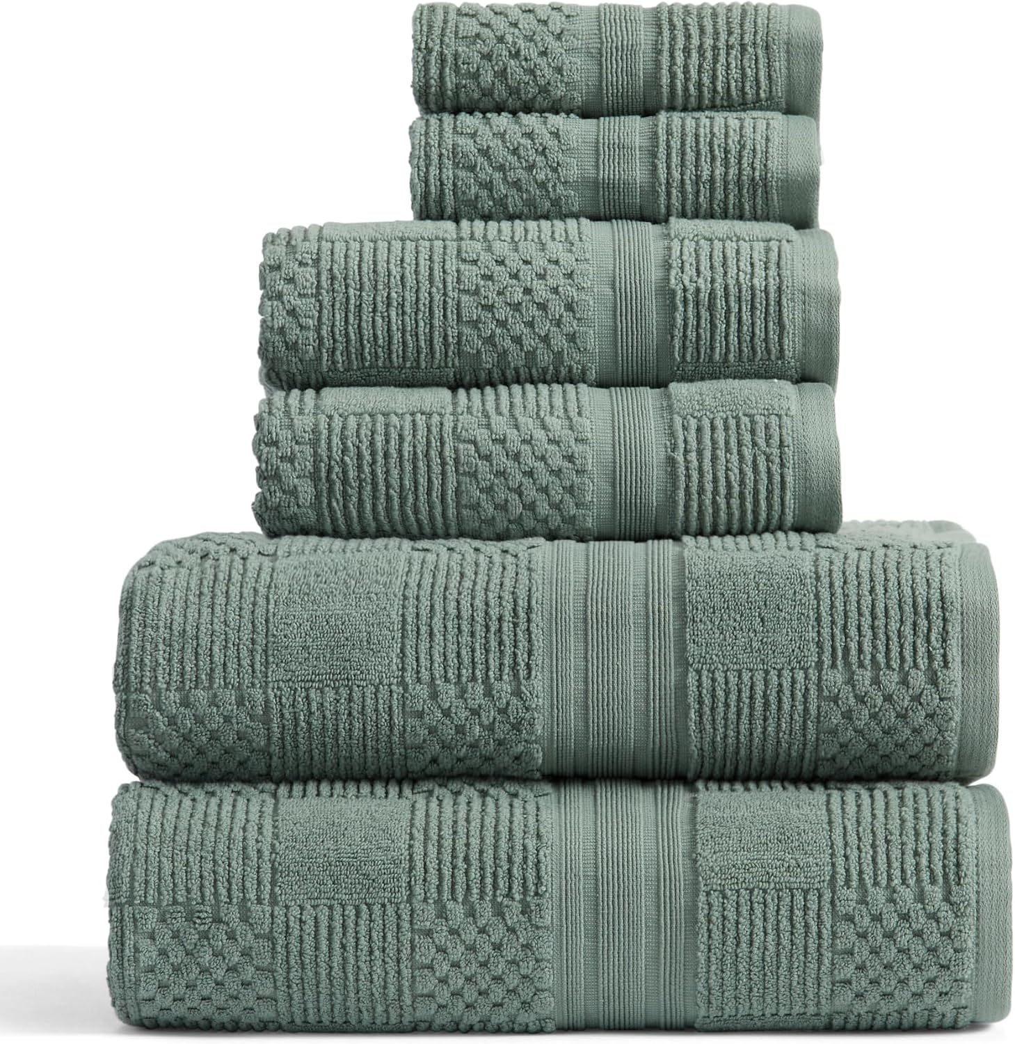Springtree Home 100% Cotton Bathroom Towel Set | 6 Piece Set - Green Bath Towels | Geometric Textured Design | Absorbent & Quick-Dry | Oeko-TEX® Standard 100 Cotton | Myla Collection - Lily Pad Green