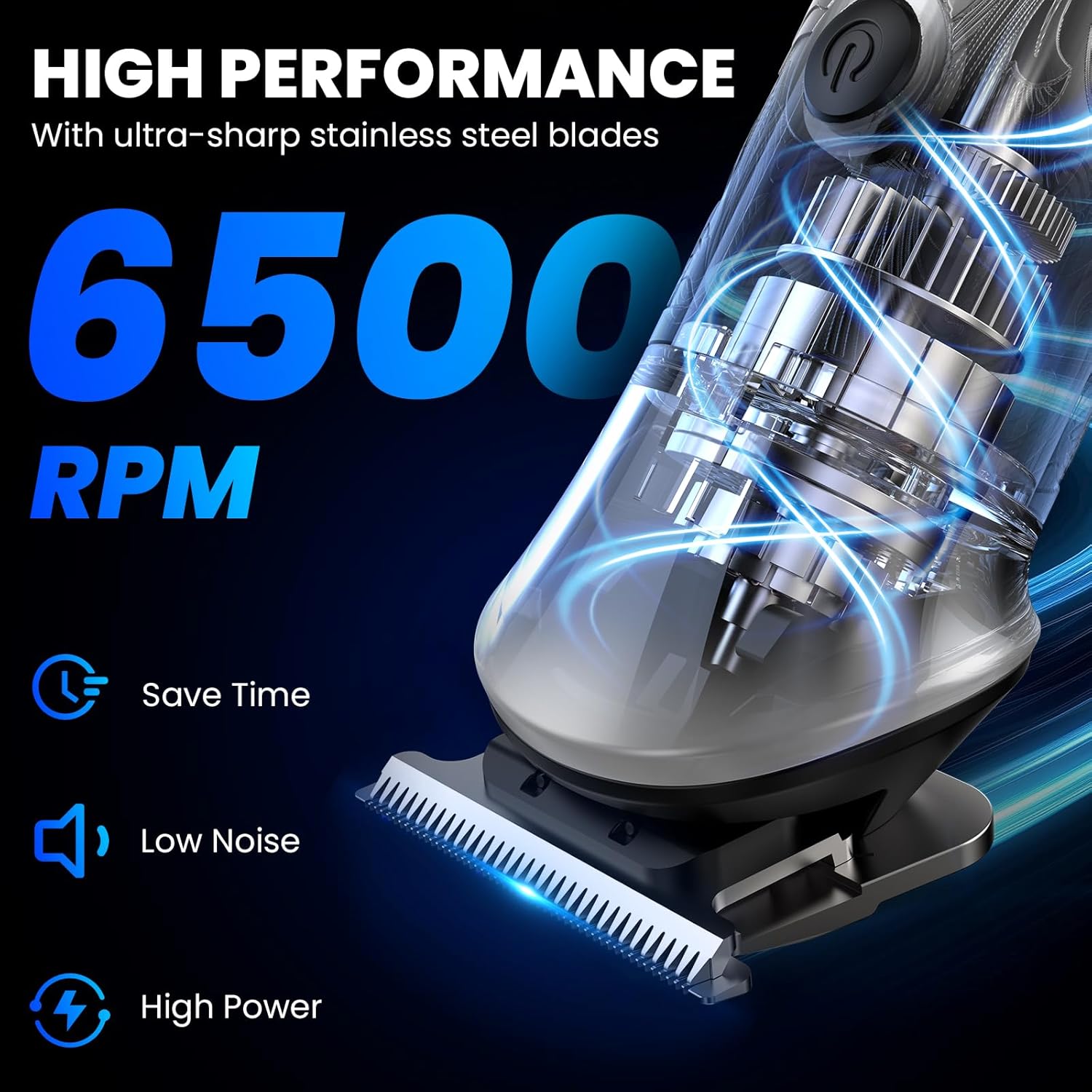- High-Performance Motor: The mustache trimmer for men has motor that speeds up to 6500RPM, this professional beard trimmer kit quickly shaves sideburns and beards with a smooth, efficient cutting on all hair types, from coarse beards to dense head hair.