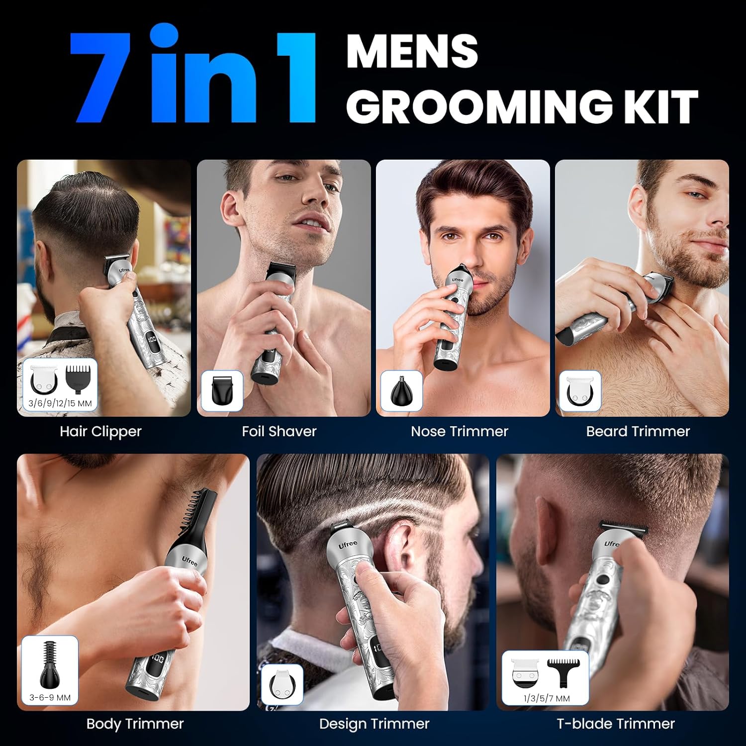 Ufree Beard Trimmer for Men, 7 in 1 Electric Shavers Razor, Cordless Hair Trimmer, Men's Grooming Kit for Body Hair, Nose, Face & Mustache, Birthday Gifts for Men, Husband Father