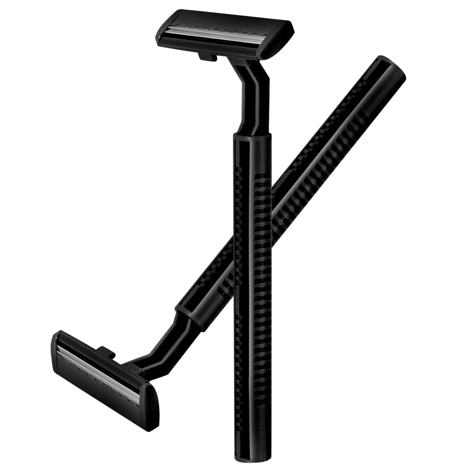 - This double-bladed razor is made with a high-quality plastic handle and stainless steel blades that are sharp and durable and will not rust. Transparent lids for safe storage and carrying