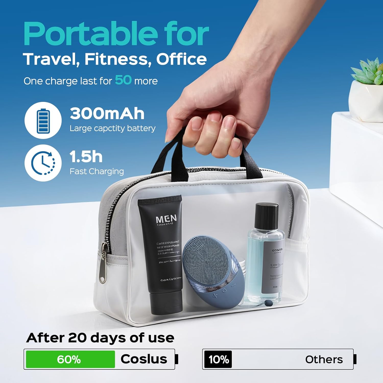 - Waterproof and Travel-Ready for Active Lifestyles: Built with an IPX7 waterproof rating, the COSLUS face scrubber is safe to use in the shower or at the sink. Its compact and cordless design fits easily in your gym bag or carry-on, making it the ideal companion for frequent travelers, business professionals, or backpackers on the go. Whether you're prepping your skin before a meeting or refreshing it after a long flight, this portable Face Scrubber supports consistent deep cleansing and massage benefits, helping your skin stay refreshed anywhereâeven on the road