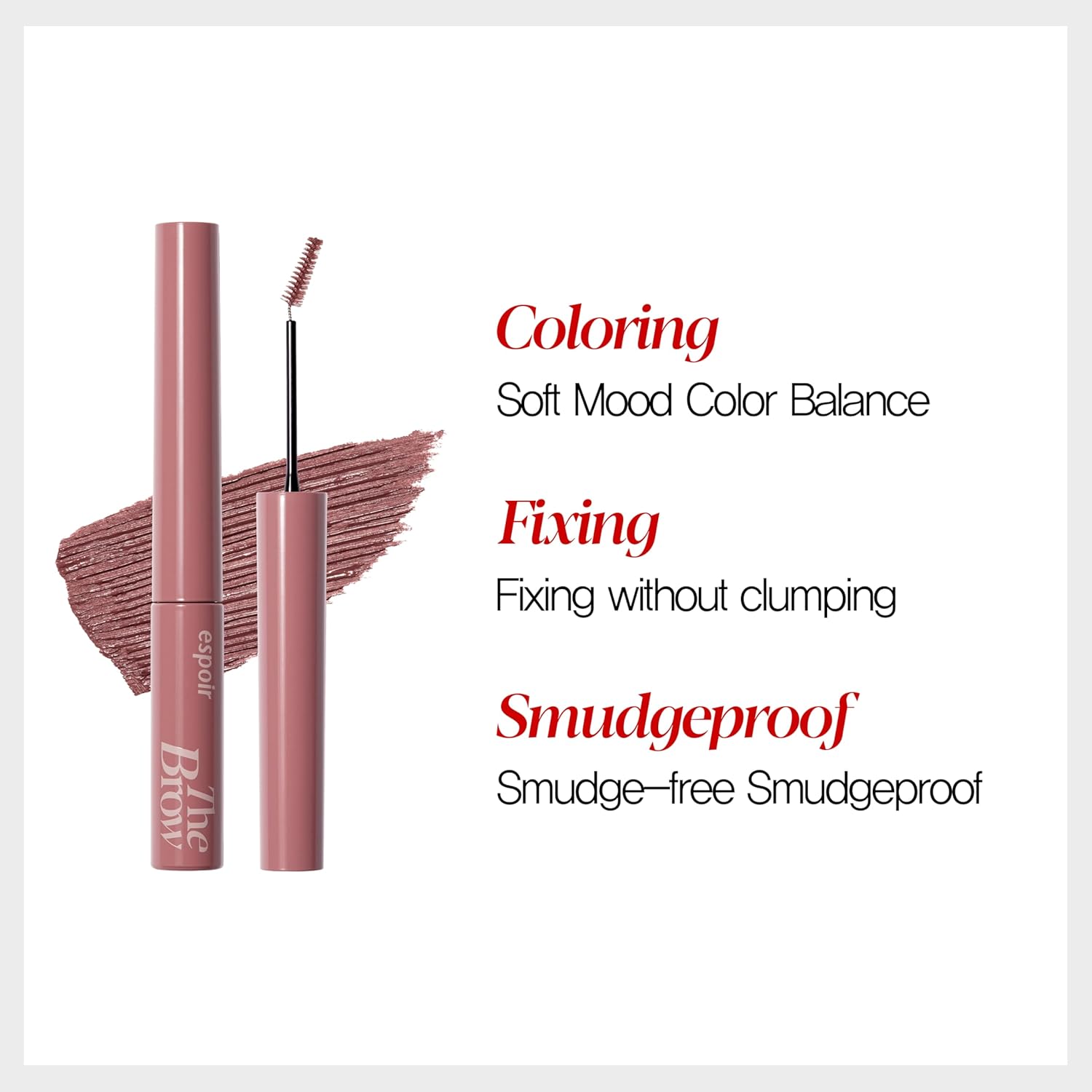 Espoir The Brow Color Fixing Cara #6 Rosy Brown 0.1 fl oz | Easy Fixing without Clumping | Long Lasting Smudgeproof Eyebrow Mascara | Soft Mood Coloring Tinted Gel | Korean Eye Makeup