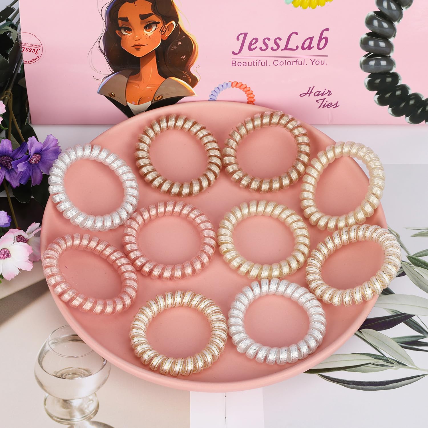 JessLab Spiral Hair Ties for Women, 10-Pack Traceless No-Damage Ponytail Holders, Coils Hair Bands for Girls, Assorted Colors