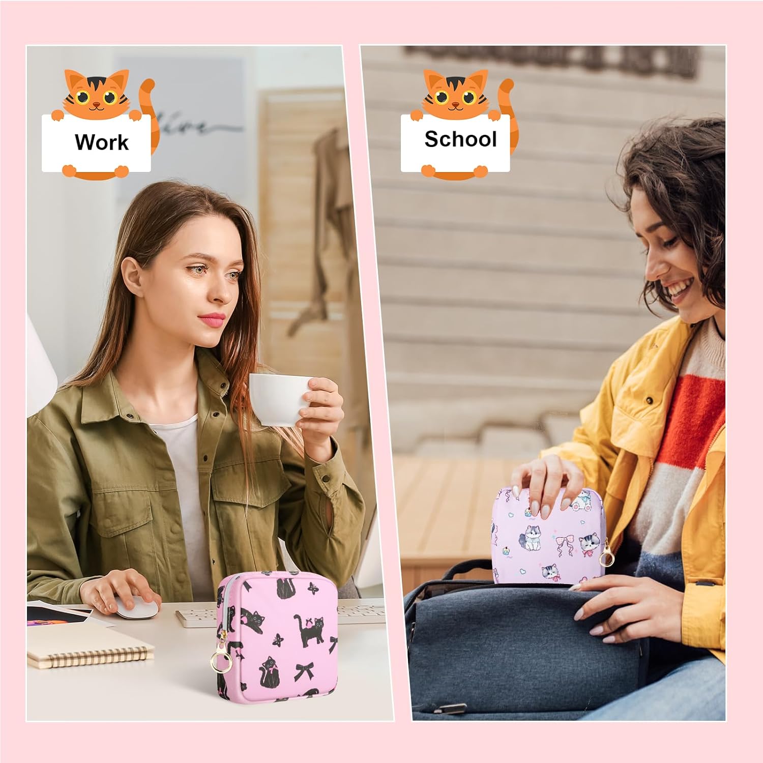 Tampon Holder for Purse, Canvas Period Bag Sanitary Napkin Storage Bag for Girls Womens, Portable Feminine Emergency Pad Period Pouch(Colorful Kittens)