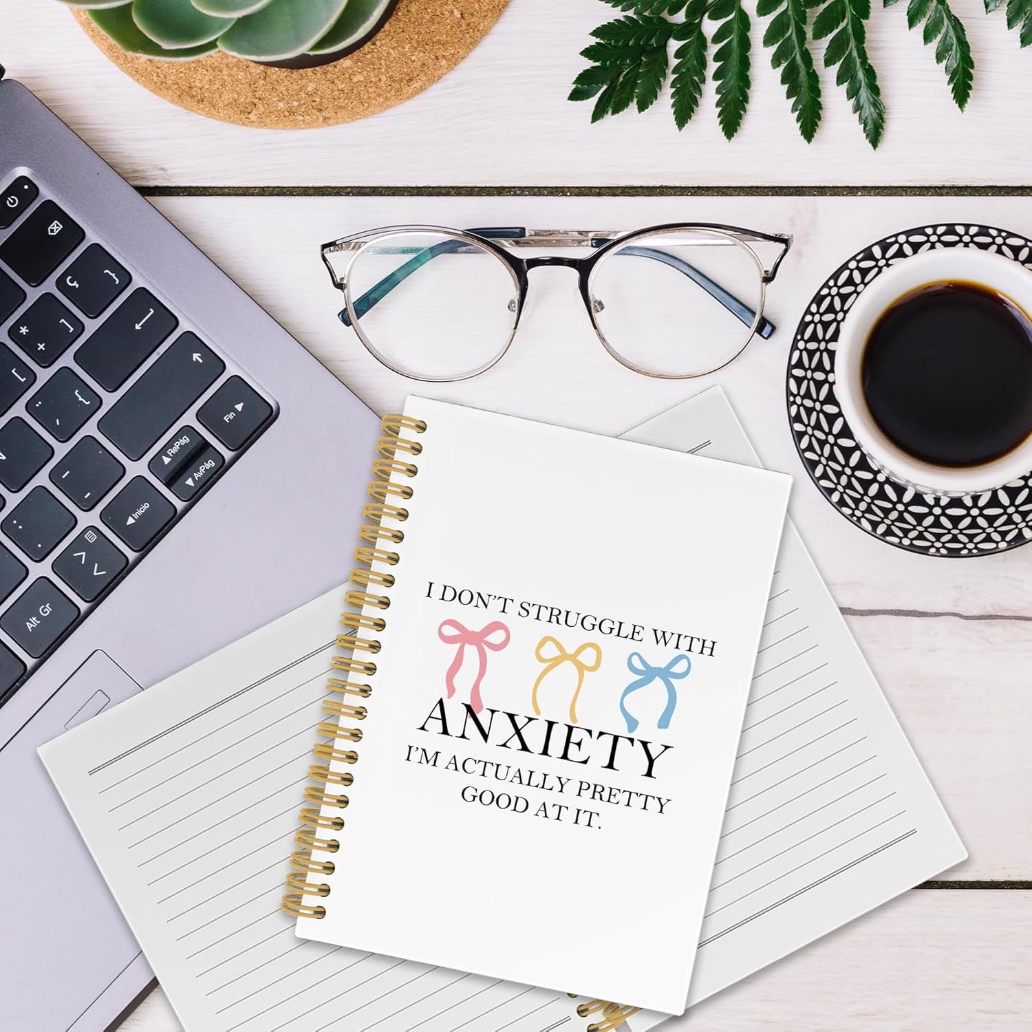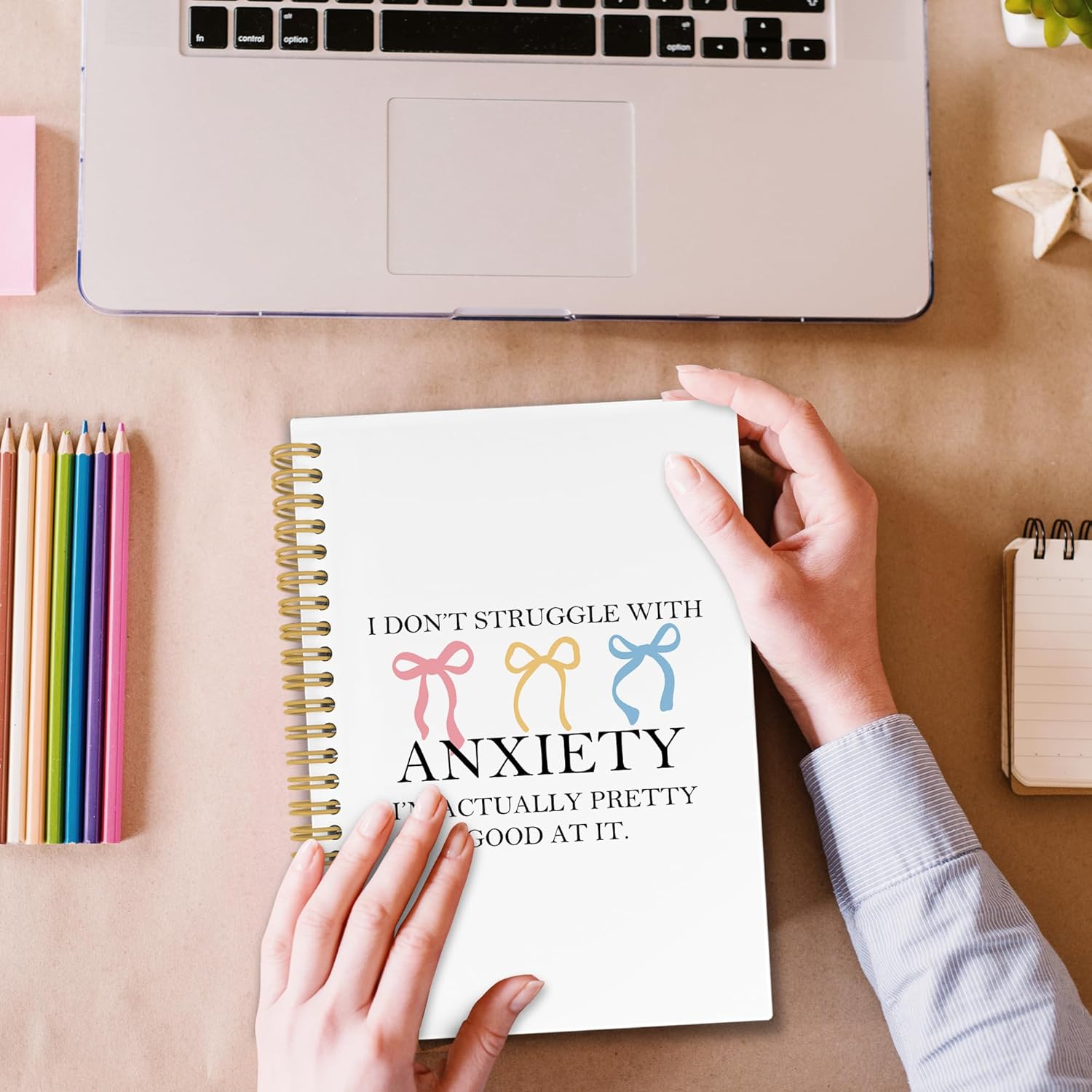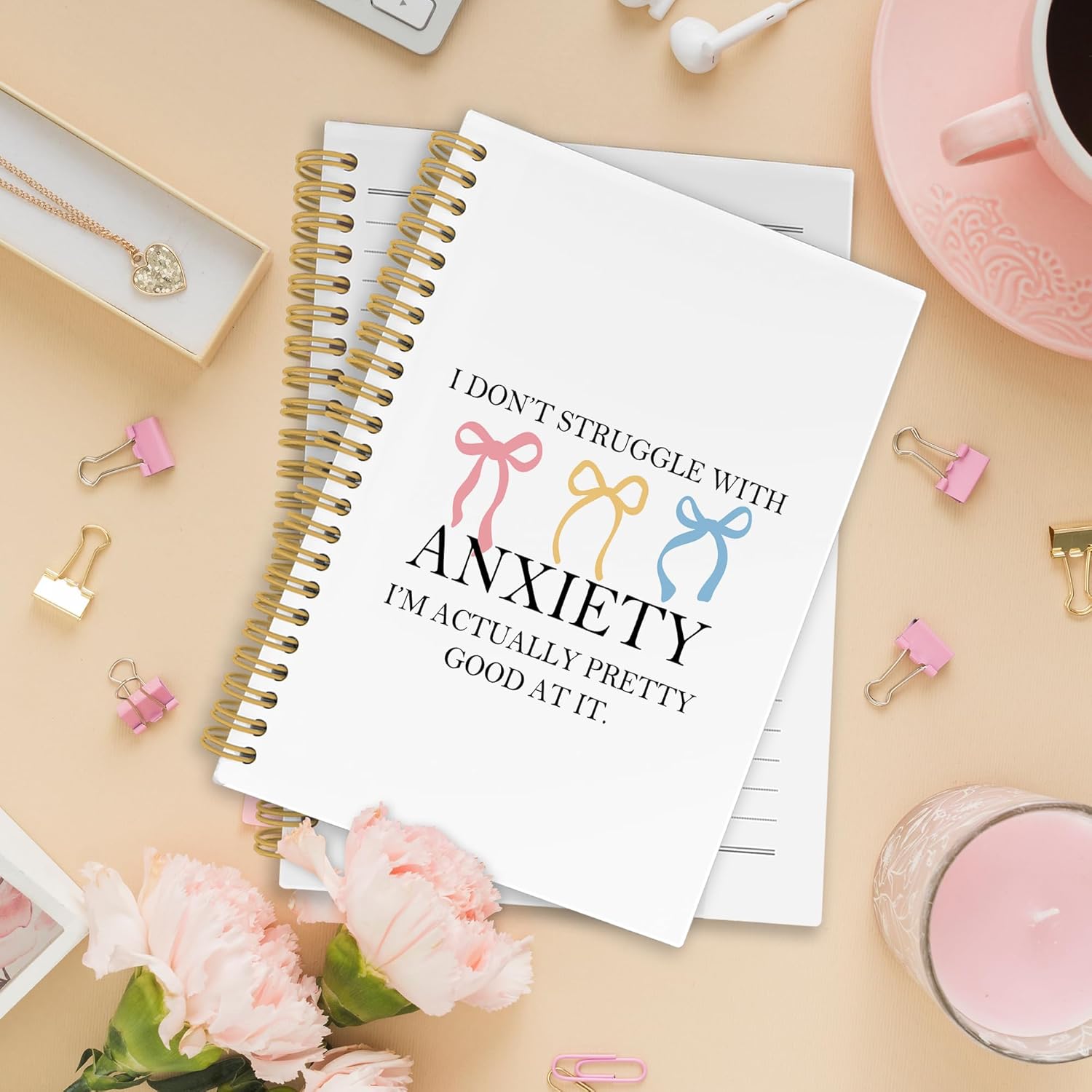 Coquette Bow Mental Health Spiral Notebook, Inspirational Journaling Notebooks for Women, Anxiety Relief Hardcover Journals for Office 160 Pages 5.5 x 8.3 Inch, Anti Anxiety Gifts for Girls