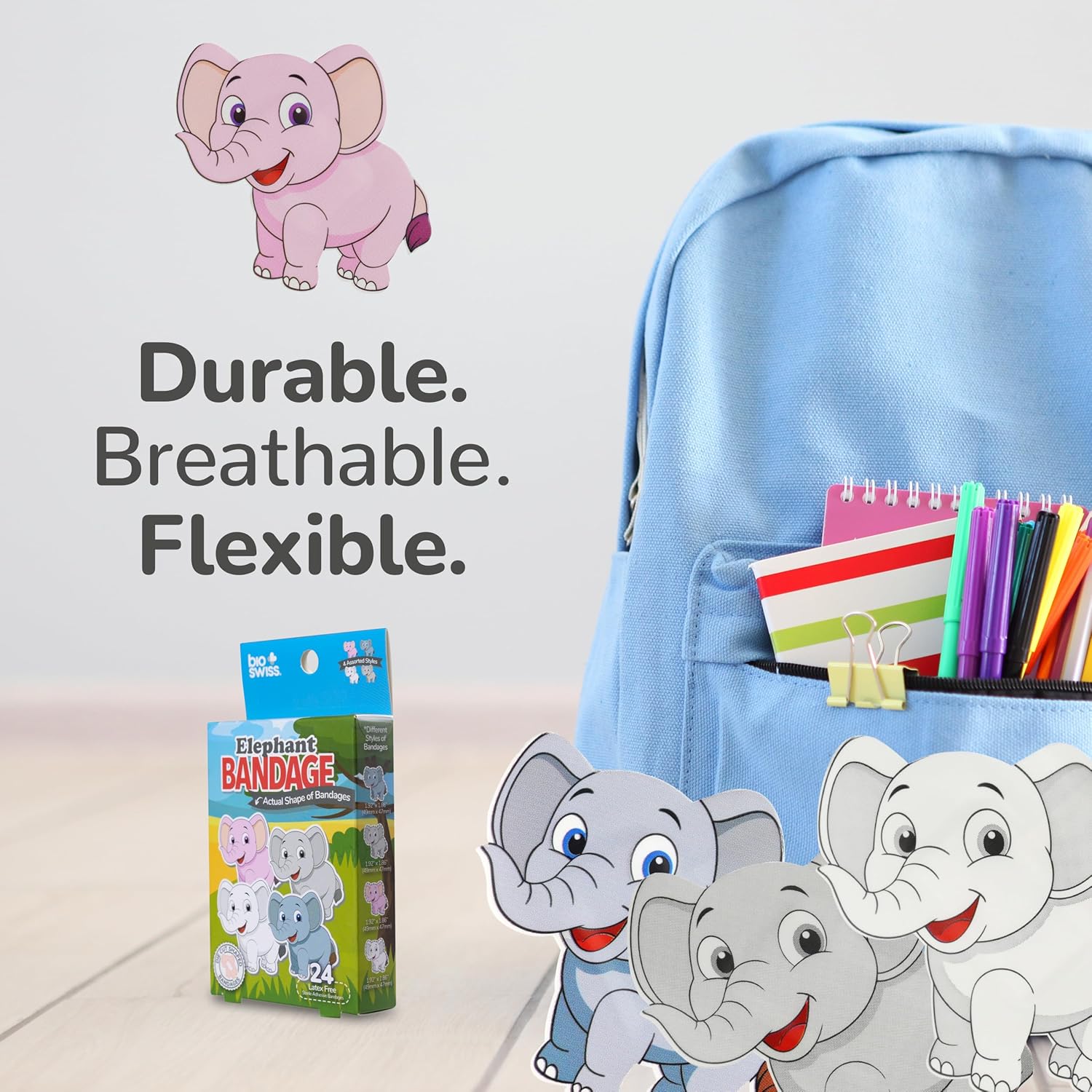 - 24 ELEPHANT KIDS BANDAGES: Fun elephant-shaped adhesive bandages pack helps protect cuts, scrapes, and minor wounds while making healing less stressful for children
