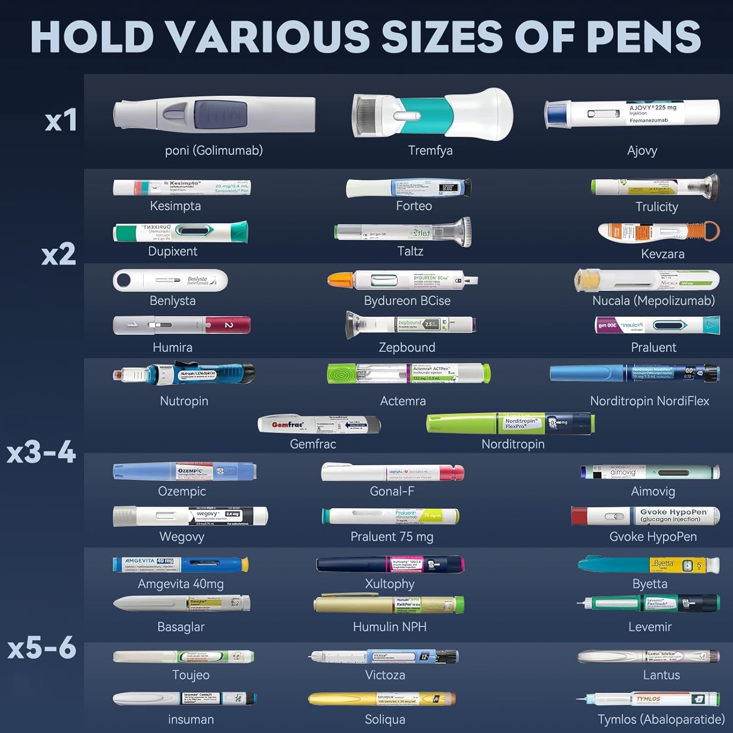 - ⭐ Portable and Lightweight:This medicine travel cooler fits easily into a backpack or suitcase. The spacious interior holds 1–7 insulin pens, yet the unit remains compact and lightweight—perfect for flights, camping, road trips, or everyday carry. TSA-compliant for smooth travel experiences.