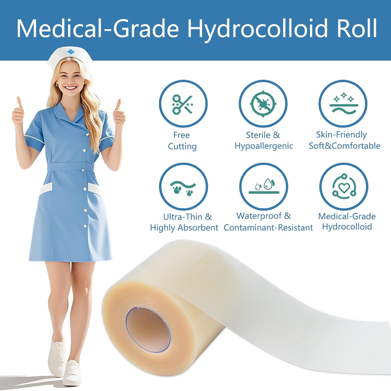 Hydrocolloid Bandages Roll for Wound Care – Cut-to-Size | Self-Adhesive Hydrocolloid Roll for Burns, Blisters & Acne | Waterproof, Ultra-Absorbent, ER-Approved First Aid Essential (2in*16ft)