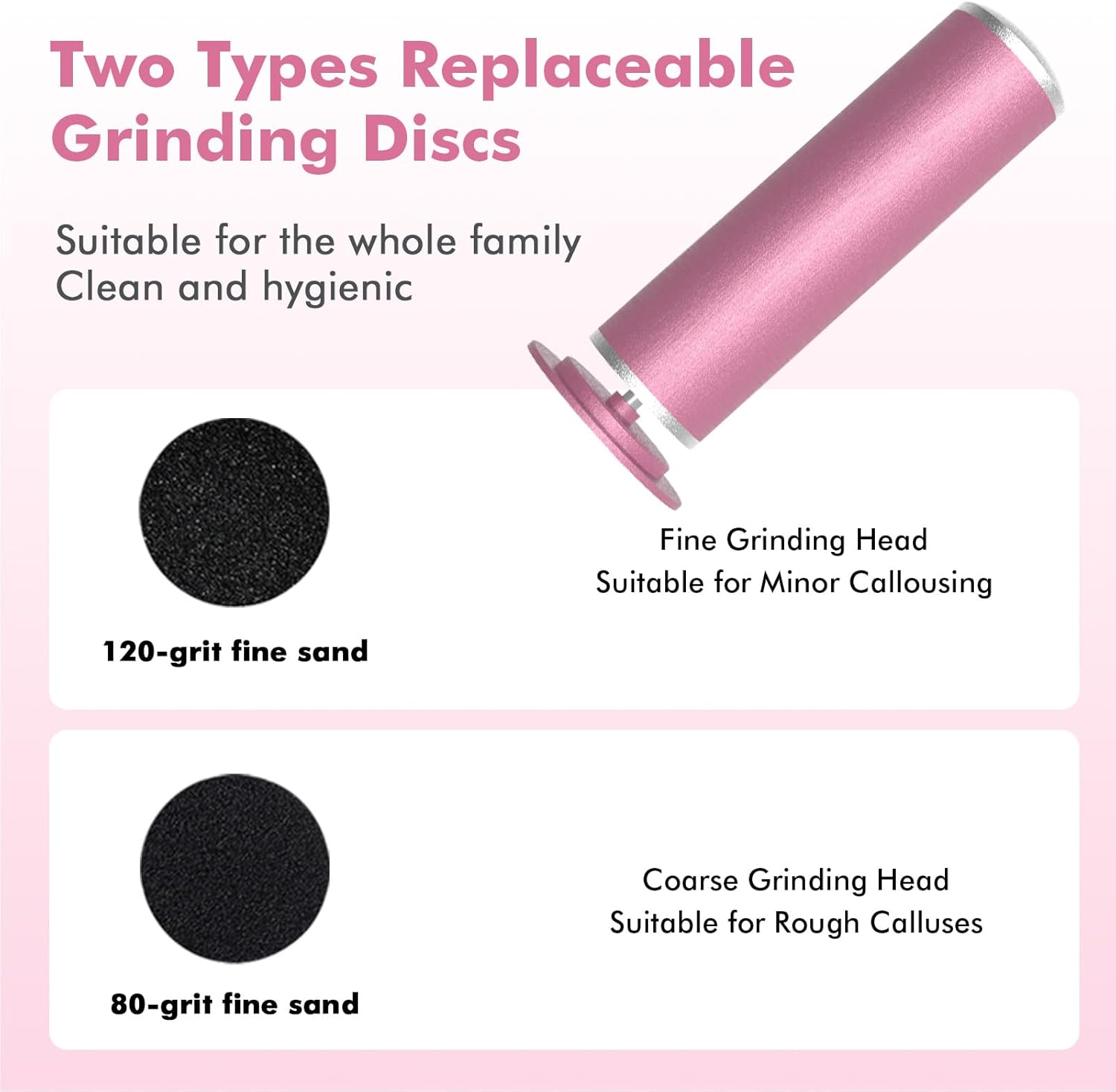 - 2 Grinding Heads: The electric callus remover has two roller heads: a fine head for daily care and a coarse head for rough skin. Choose the right head for your skin. Replacement takes just 1 minute and is easy