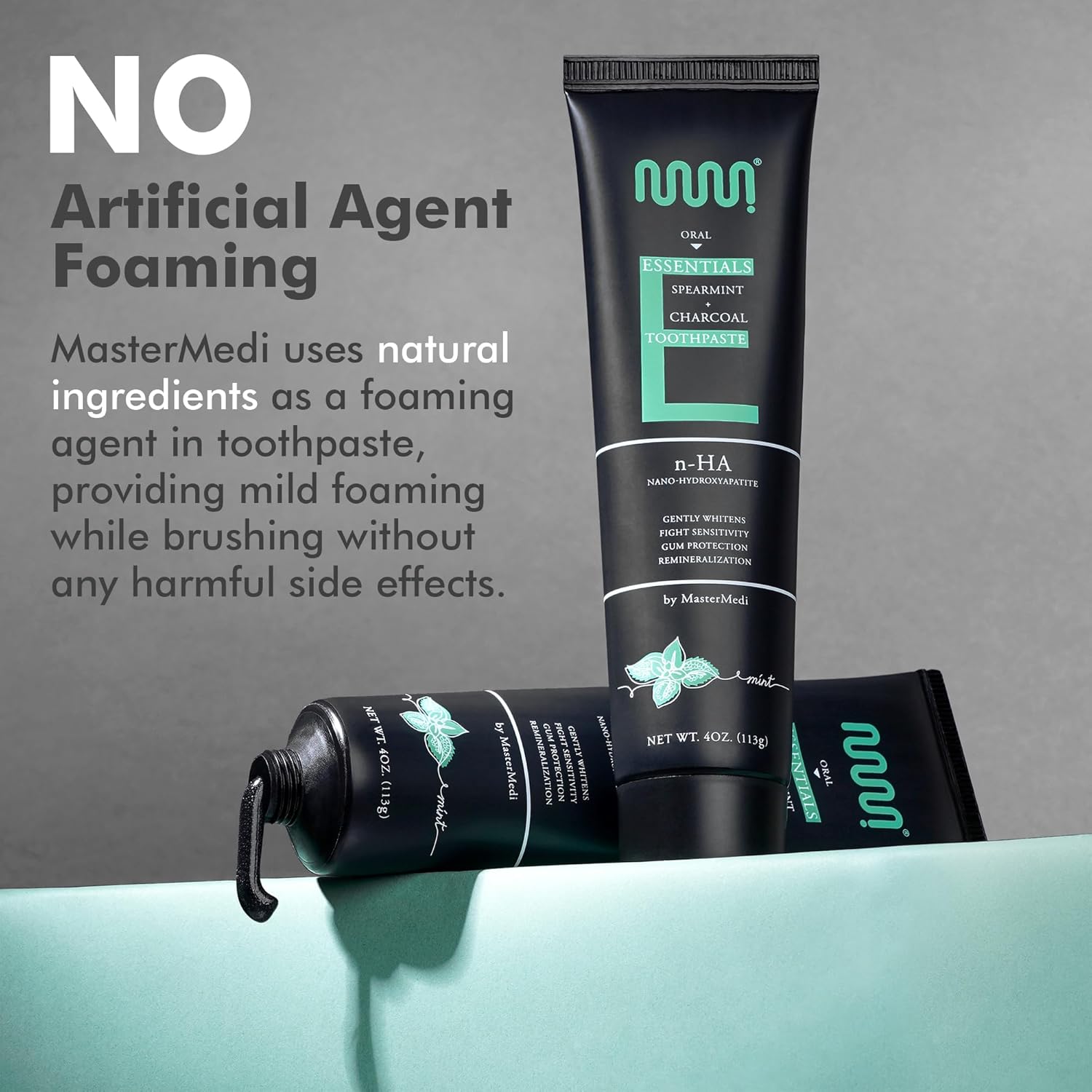 MasterMedi Nano Hydroxyapatite Toothpaste (Inspired by 10% nHA Formulas), Fluoride-Free, Charcoal Whitening, Sensitive Teeth Care, Enamel Support, SLS-Free, Xylitol, Citrus Mint, 4 Oz (Pack of 3)