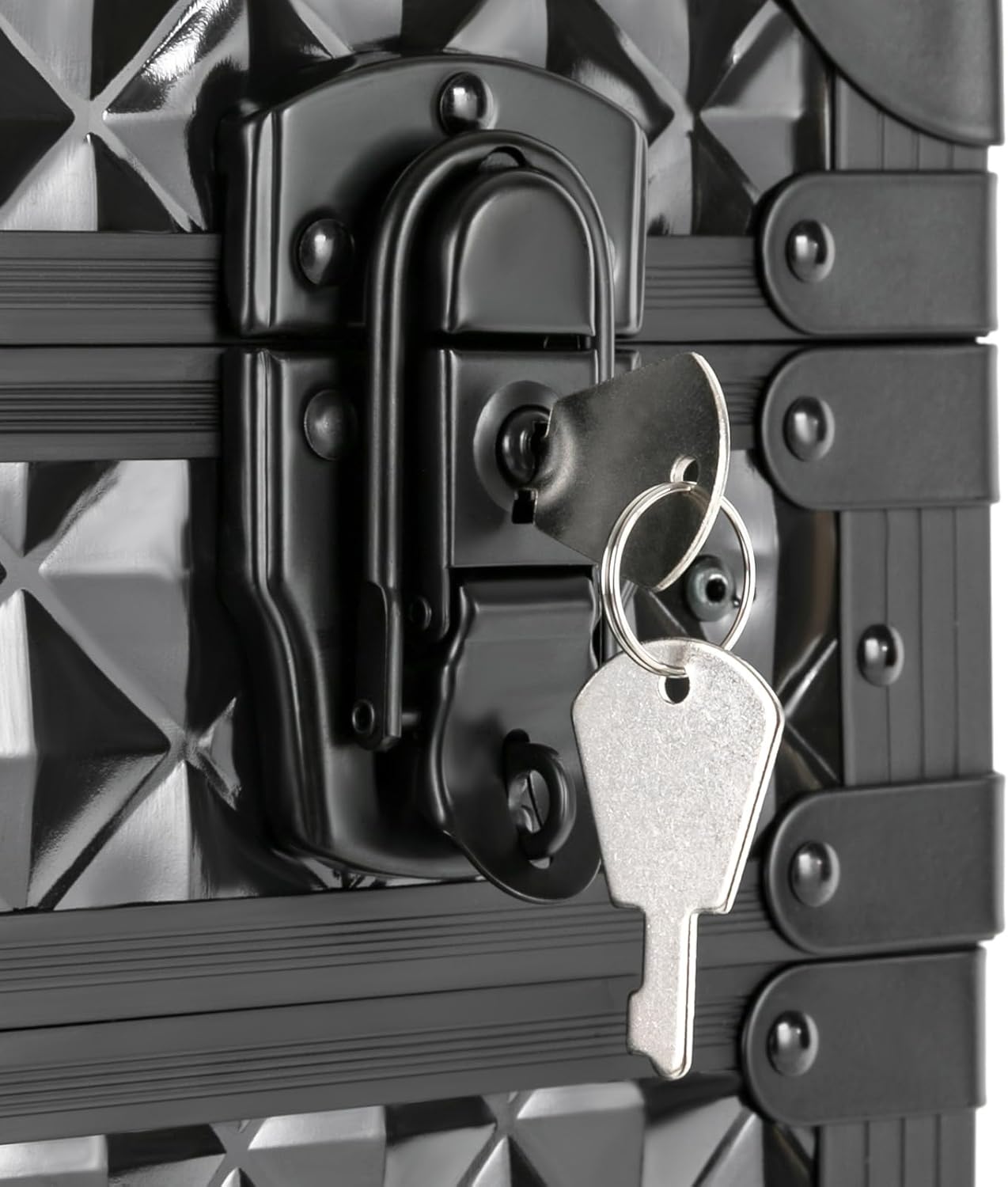 - Durable and Sturdy: The professional makeup train case is made of high-quality materials such as aluminum, ABS, and iron. The professional makeup train case is equipped with 6 keys to unlock the internal lock of the box and 2 combination locks to secure the top layer of the box, fully protecting your privacy and property security.