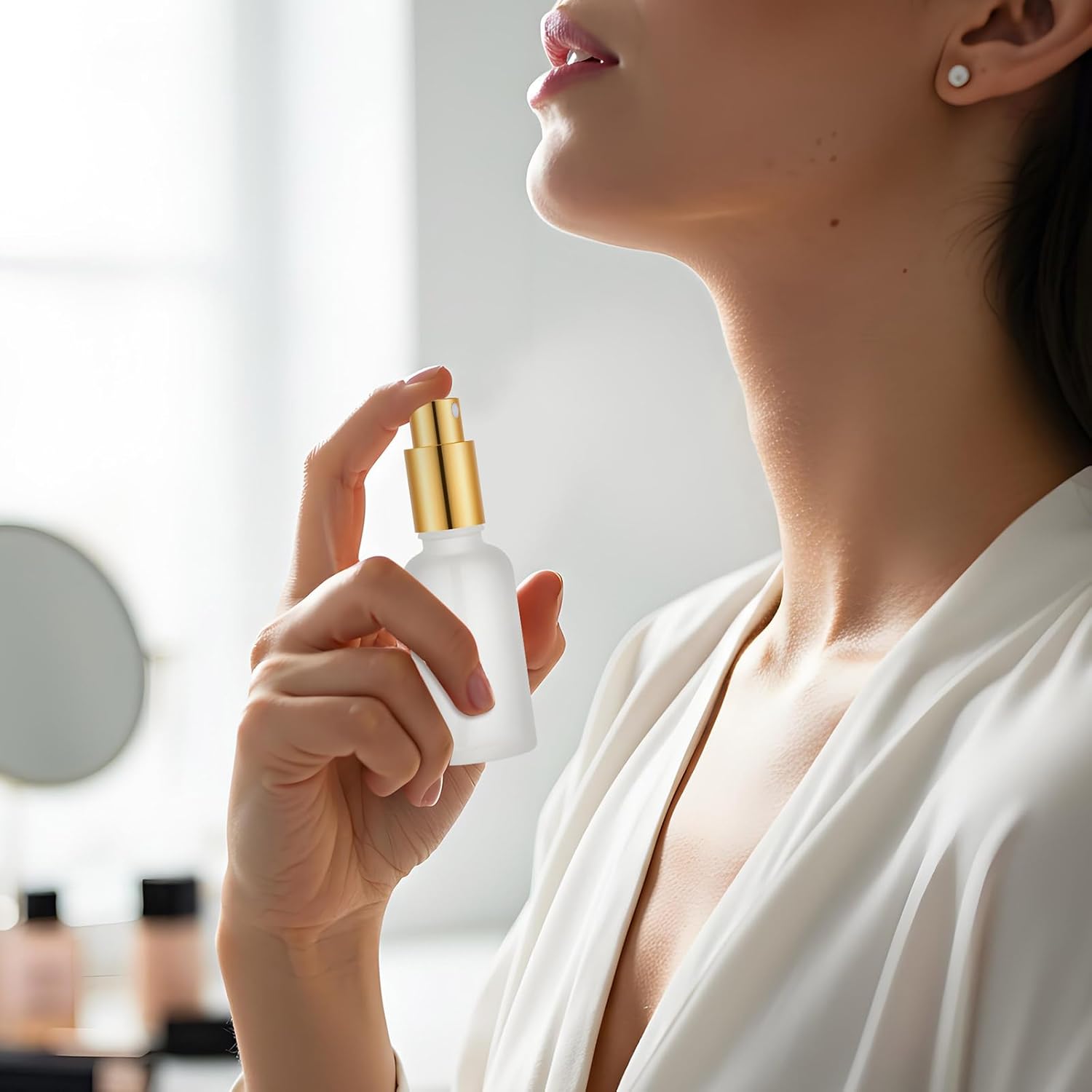 - Elegant Frosted Design: our fine mist spray bottles are designed with frosted glass body and gold cap cover, which is exquisite and elegant, not only a perfume bottle, but also a good ornament on your dressing table, and the frosted design can avoid inner liquid contact with light directly, bringing convenience to your storage