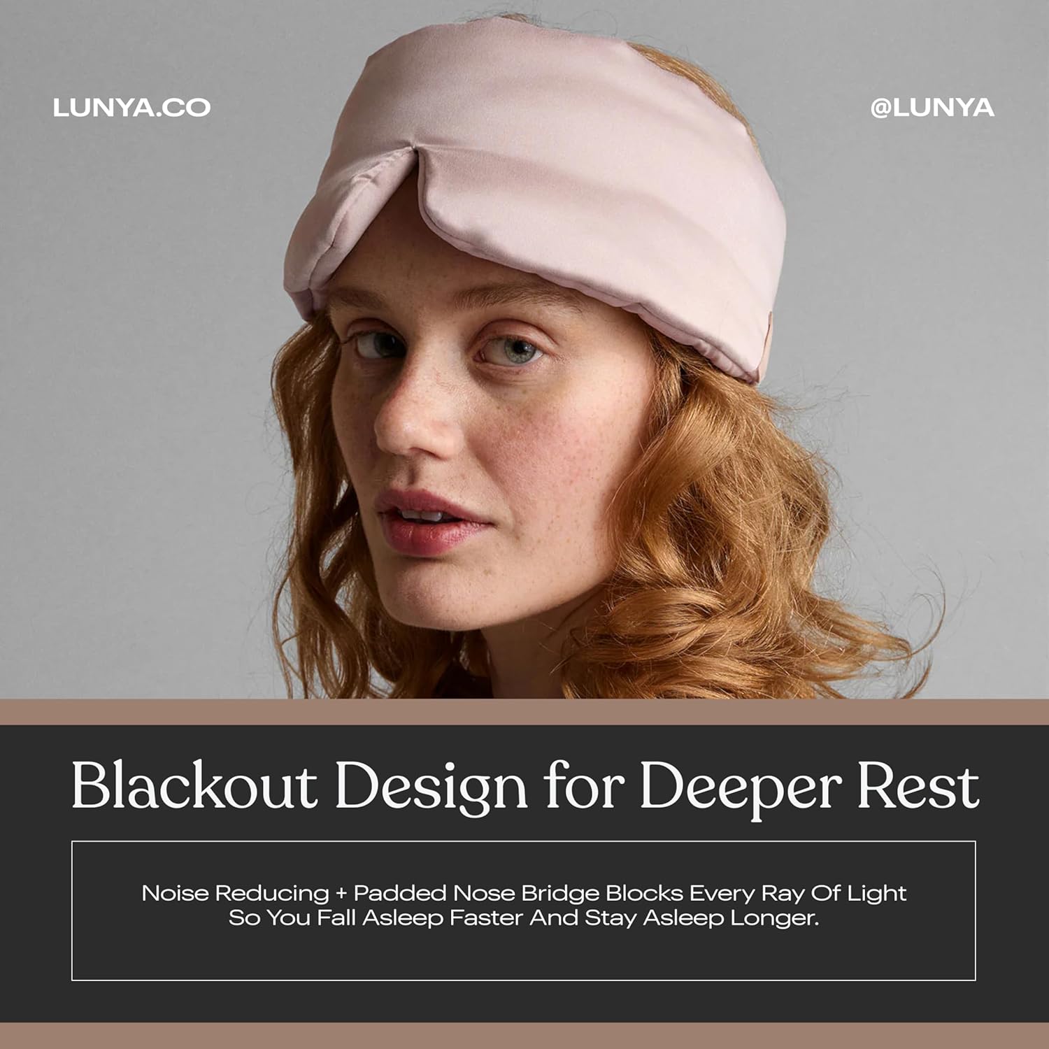 Lunya Washable Silk Sleeping Mask – Thermoregulating Mulberry Silk, Light Blocking and Comfortable Fit – Sleep Mask for Women and Men with Box – Delicate Pink – Small