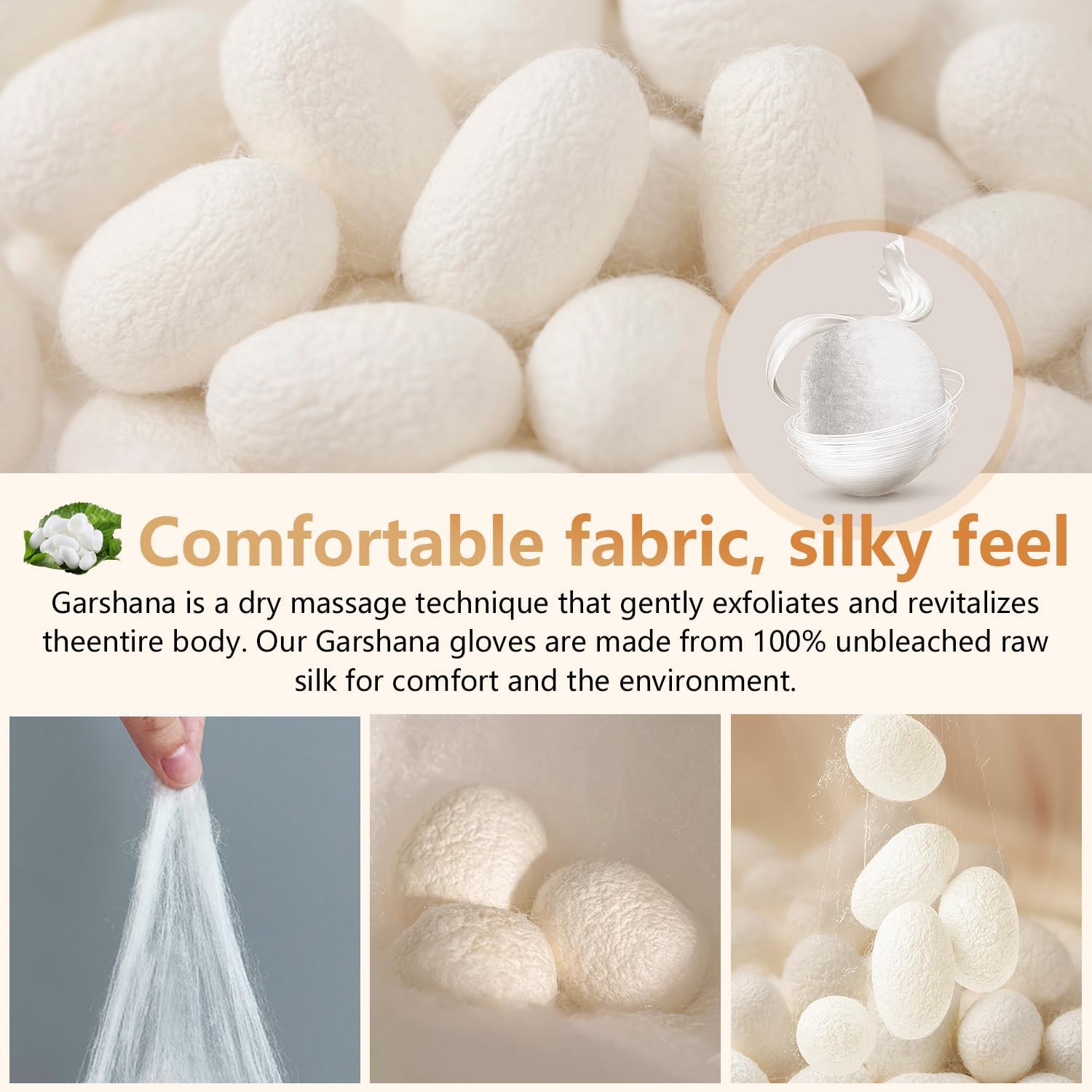Garshana Gloves Raw Silk Massage, Raw SilkGloves Garshana with Elastic Wrist Bands, Exfoliating Bath Massage Raw Silk Gloves, for Skin BrushingMassage