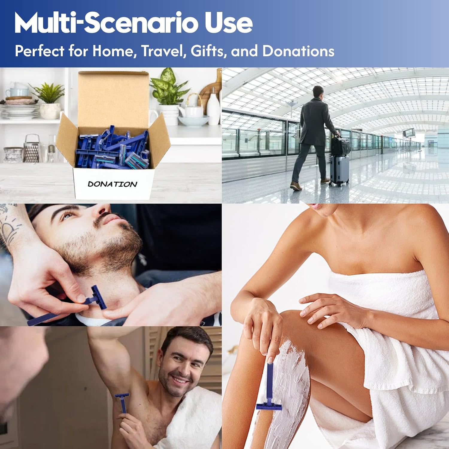 - BULK 60-PACK VALUE SET: 60 disposable razors value pack saves costs for hotel bathroom supplies, barber shop tools, emergency preparedness kits, homeless shelter donations, and college dorm essentials with long-lasting blades.