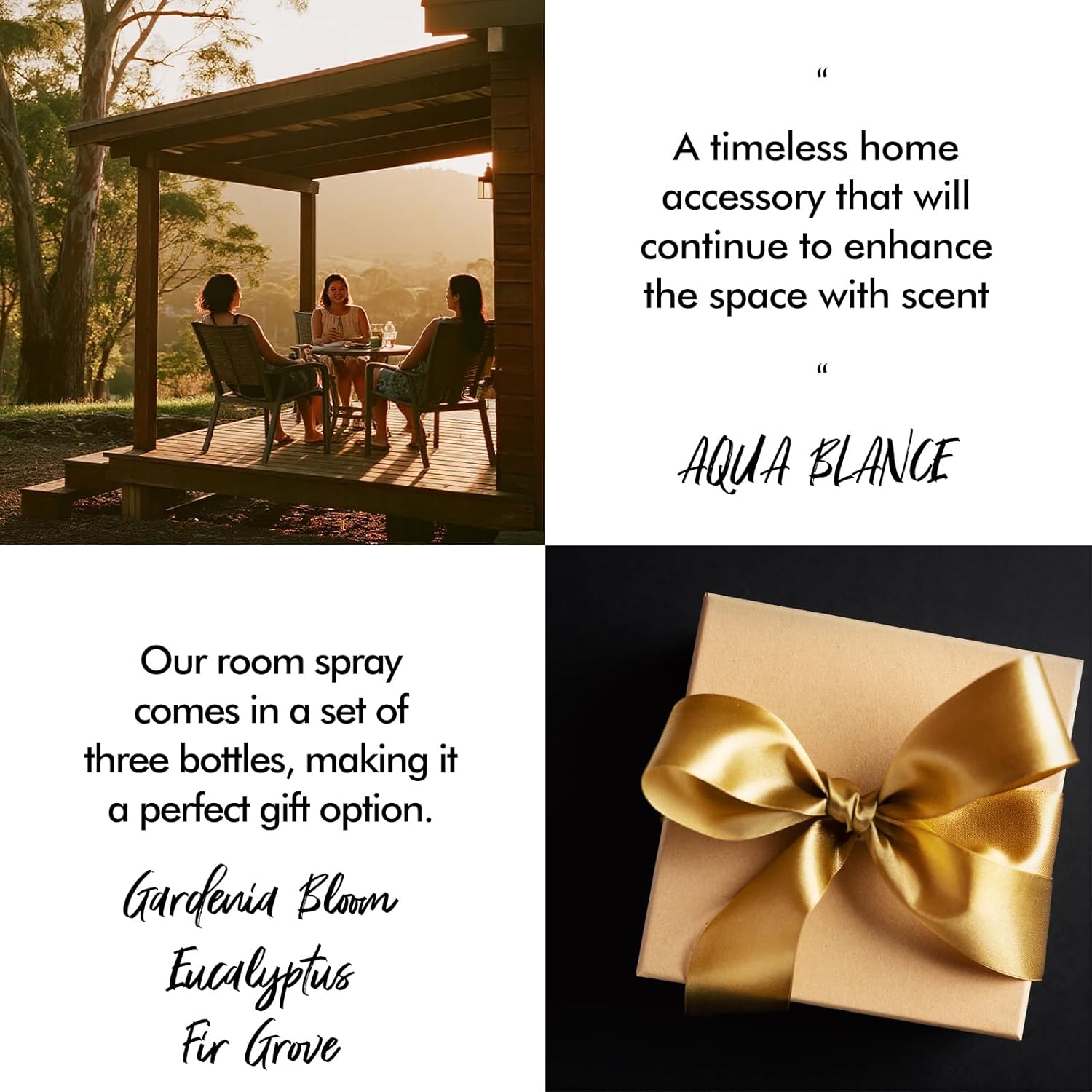 Fragrant Room Spray, Fir Grove, Eucalyptus Leaves, Gardenia Bloom, 3 x 3.4 fl oz, Air Fresheners Odor Eliminator for Home, Bathroom, Concentrated Room Spray