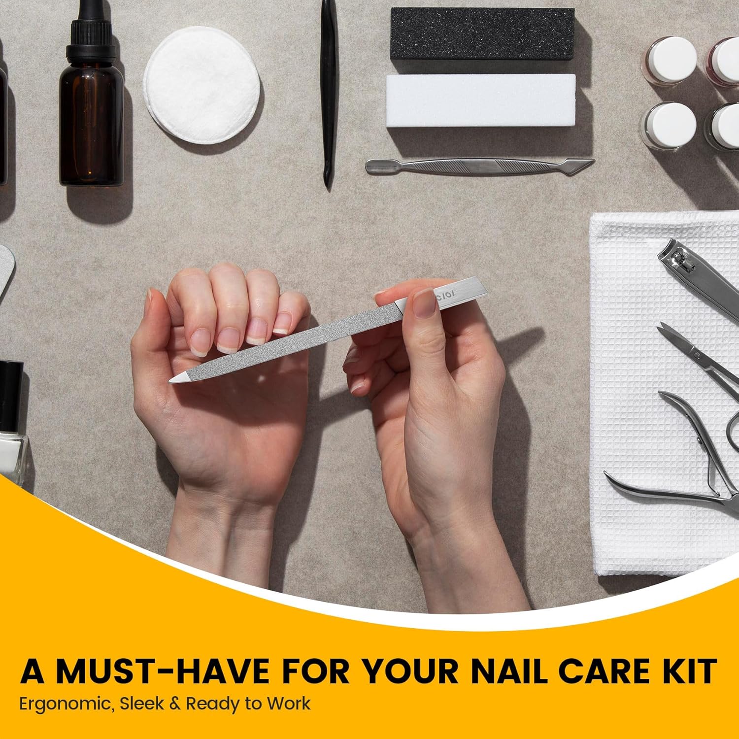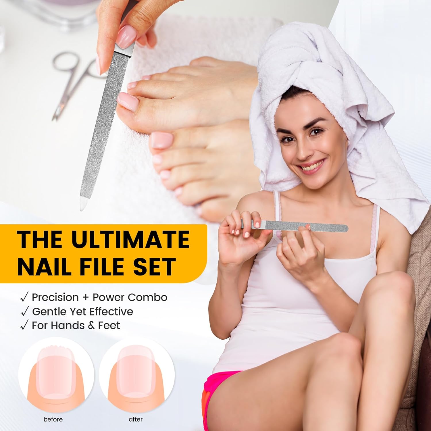 - SALON-SMOOTH FINISH, ANYWHERE, EVERY TIME - Unleash your inner nail artist! The double-sided grit on these fingernail files offers exceptional shaping and smoothing power. Perfect nail files for natural nails, yet tough enough to handle stubborn nail file for acrylic nails challenges. Achieve that professional, snag-free finish you crave, without shelling out salon prices. This is your go-to Professional manicure set in miniature.