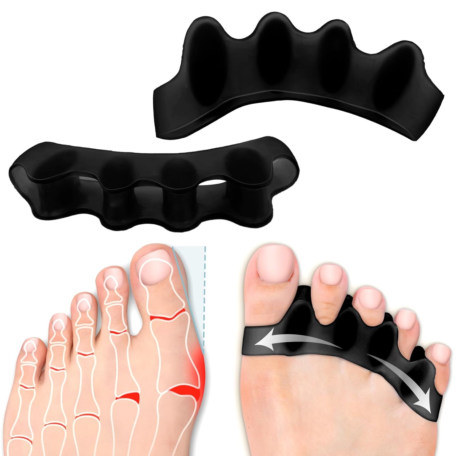 - Soft Toe Spacer Support: Crafted from flexible silicone, these toe separators offer gentle cushioning to keep toes comfortably spaced for pedicures, workouts, or everyday wear