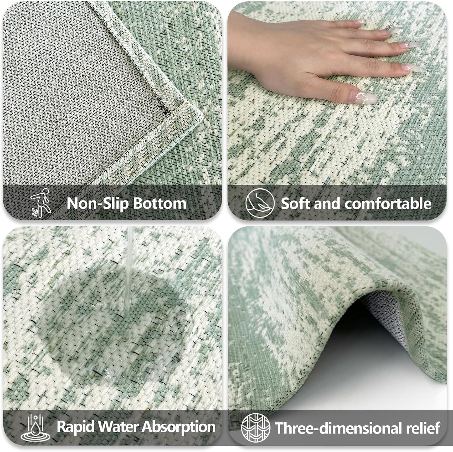 HDFK Graffiti Bath Mat | Non Slip Water Absorbent Quick Dry Woven Floor Mats | Thin Machine Washable Modern Shower Rug | Low Pile Profile Fit Under Door Vanity Bathroom Rugs | 30x20 Inch Sage Green