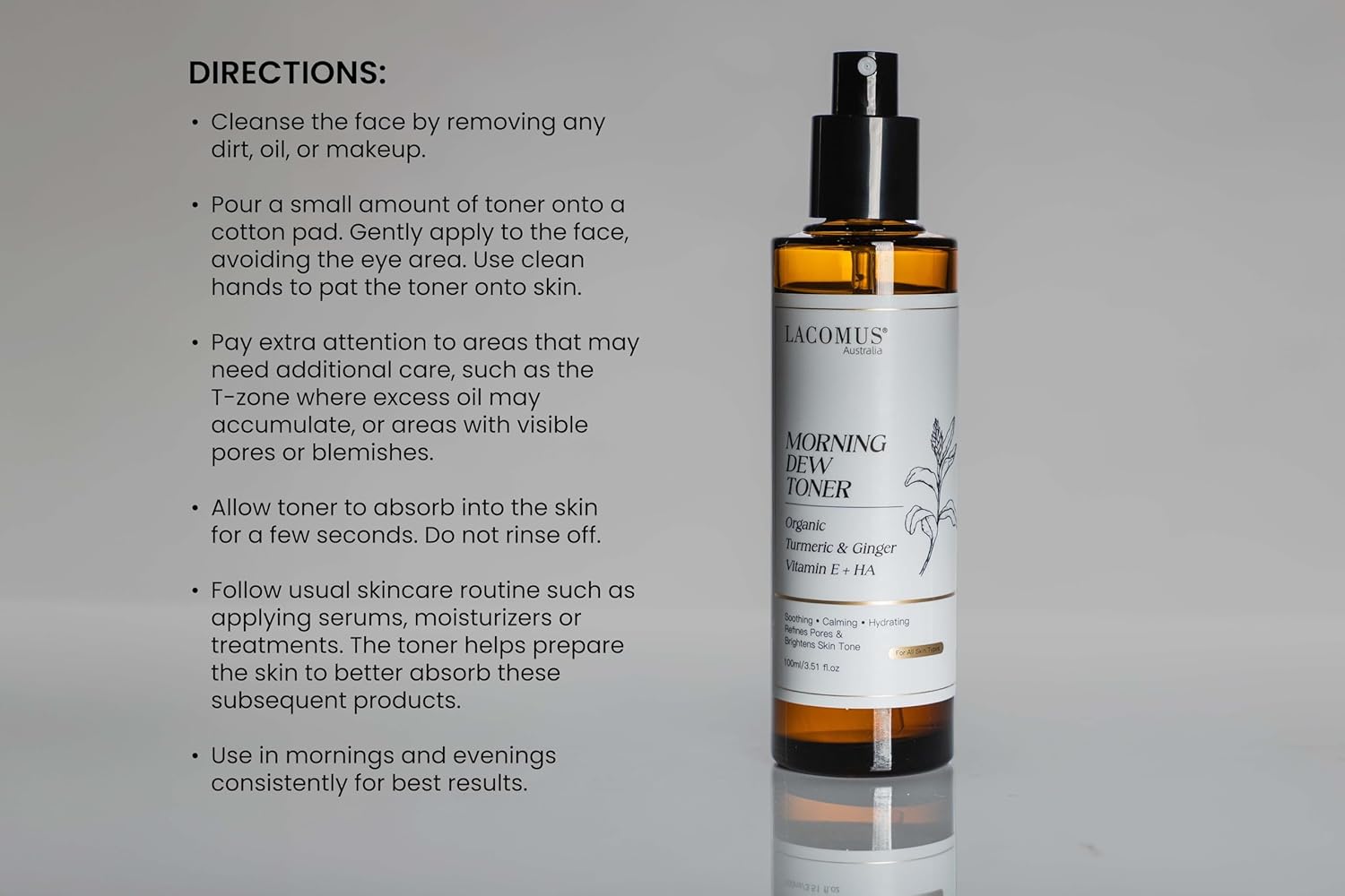 Morning Dew Organic Turmeric & Ginger Facial Toner, Infused with Vitamin E and Hyaluronic Acid, Hydrating Pore-Refining, Anti-Aging Formula for All Skin Types