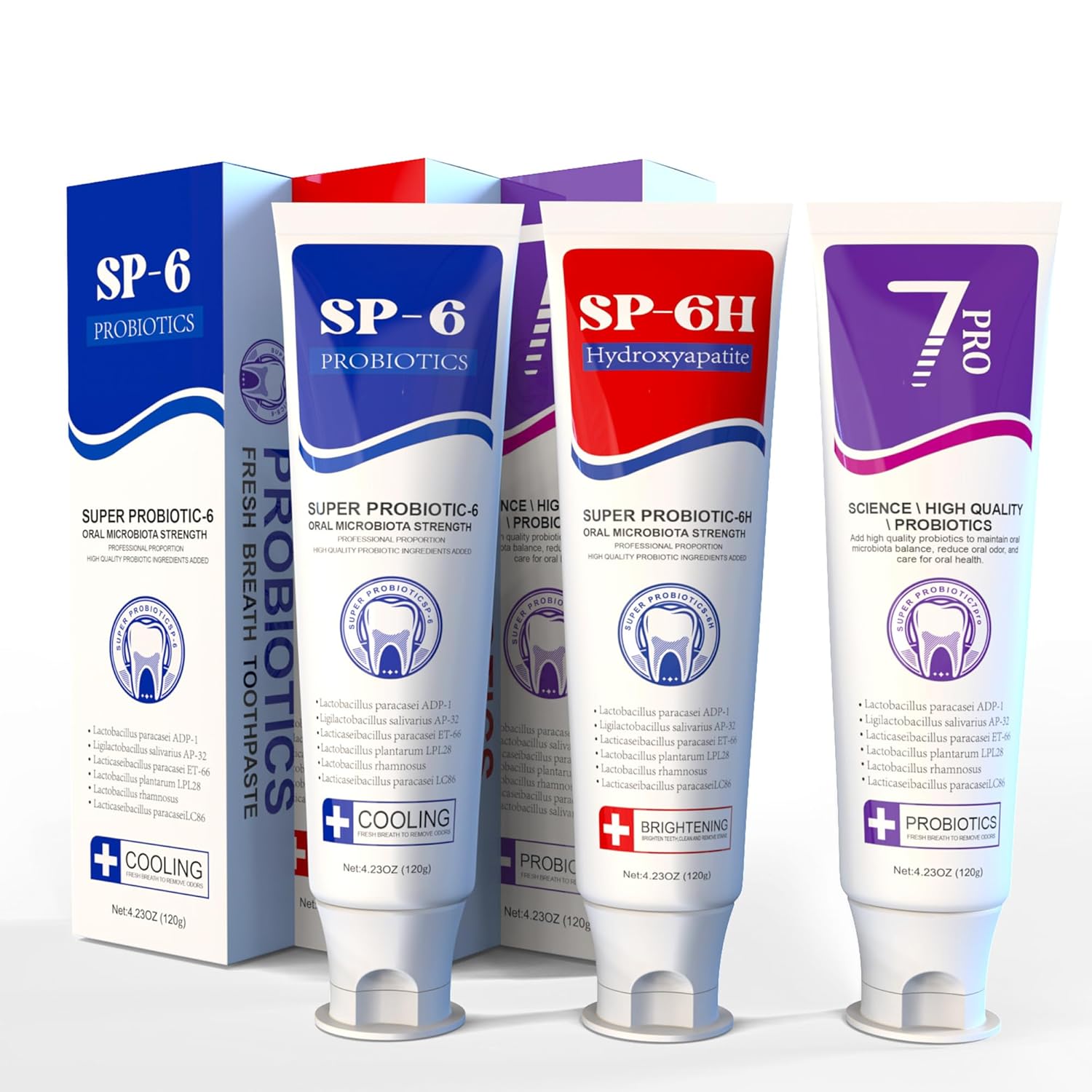 - 𝗧𝗿𝗶𝗽𝗹𝗲 𝗔𝗰𝘁𝗶𝗼𝗻 𝗧𝗼𝗼𝘁𝗵𝗽𝗮𝘀𝘁𝗲 𝗕𝘂𝗻𝗱𝗹𝗲 - This toothpaste set includes SP-6 Whitening Toothpaste, SP-6 Cooling Fresh Breath Toothpaste, and 7Pro Deep Whitening Toothpaste. It’s a perfect combination for daily oral Care.