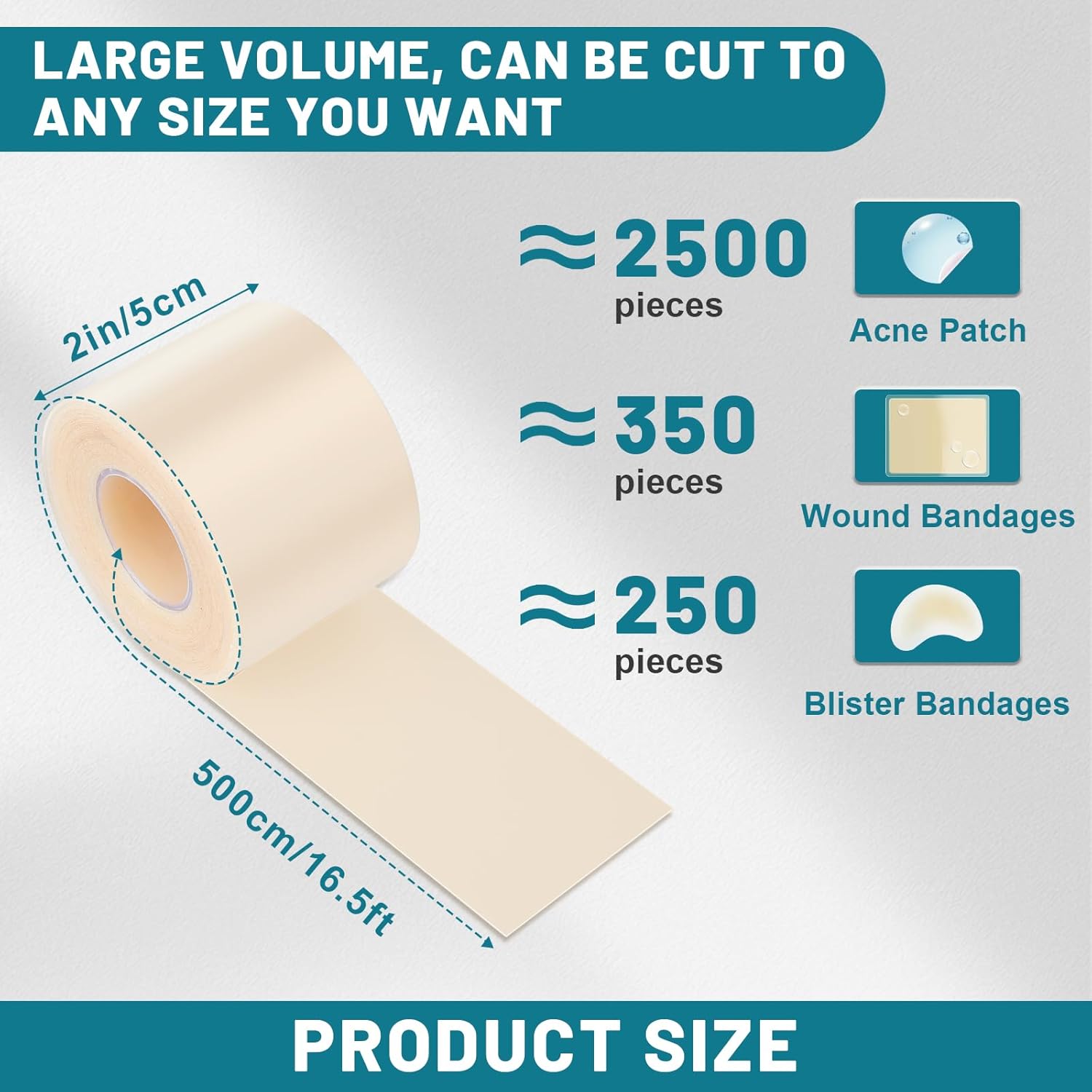 WUYUAN Hydrocolloid Roll for Wound Care, 2in*16.5ft Hydrocolloid Bandages with Self-Adhesive, Extra Large Hydrocolloid Patch Bandages Cut-to-Size, Ultra Absorbent, Waterproof