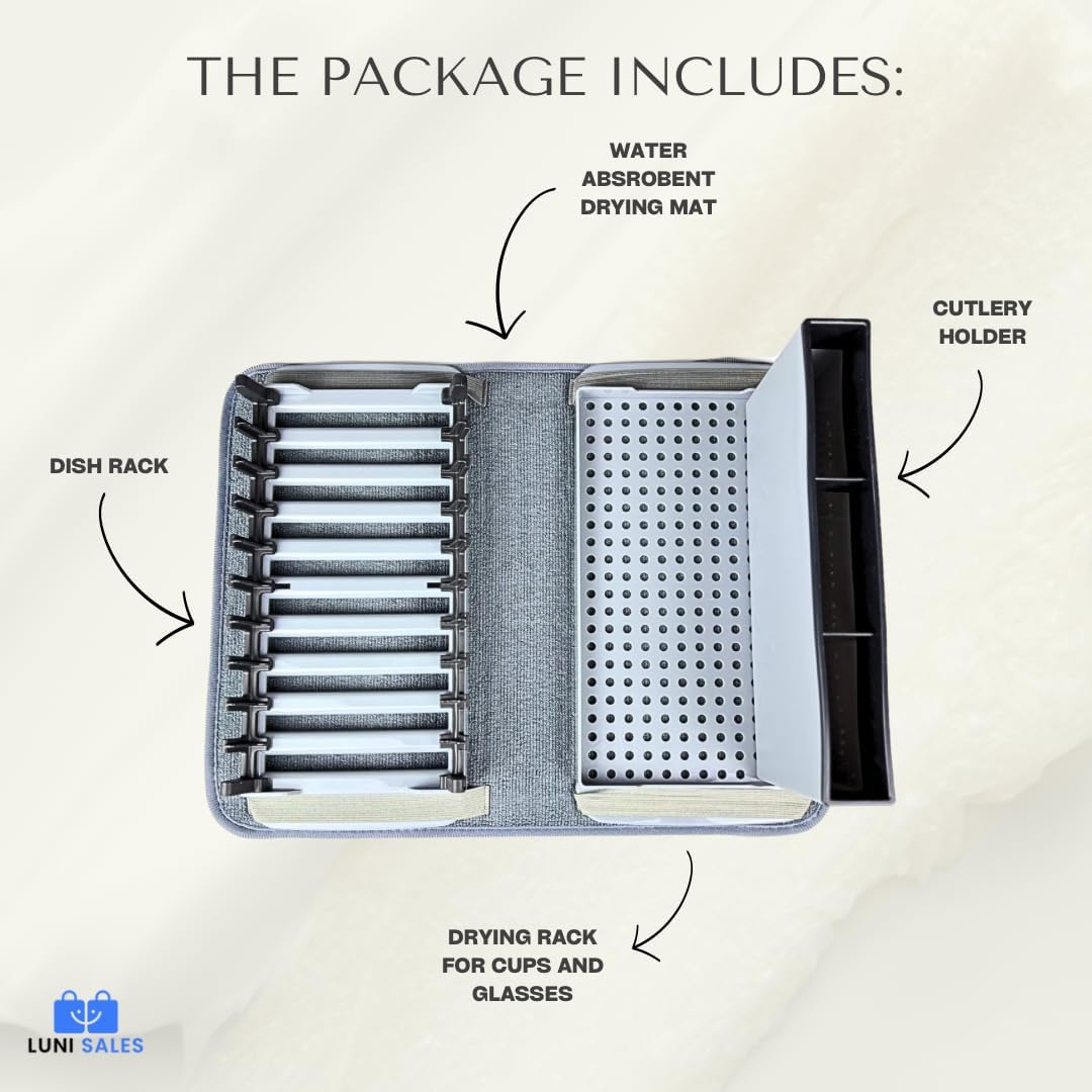 - ALL-IN-ONE DESIGN â This isnât just a dish rack mat; it includes racks for plates, glasses, and utensils, making it the ultimate dish drying mat. Everything you need in one drying mat for kitchen counter.