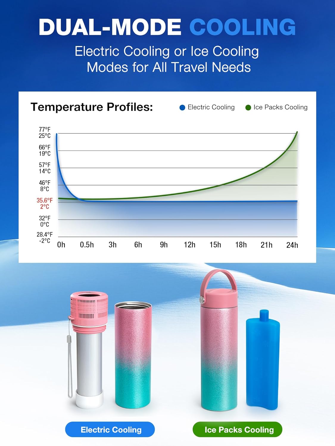 - 🔋 Two Cooling Modes - The insulin storage case offers both electric cooling and gel box cooling options. When no electricity available, the frozen gel box can provide 8-10 hours cooling, and the included regular storage lid can store small diabetic supplies such as needles, cotton balls, etc. The combination of the two is more suitable for camping, cycling, work and short trips