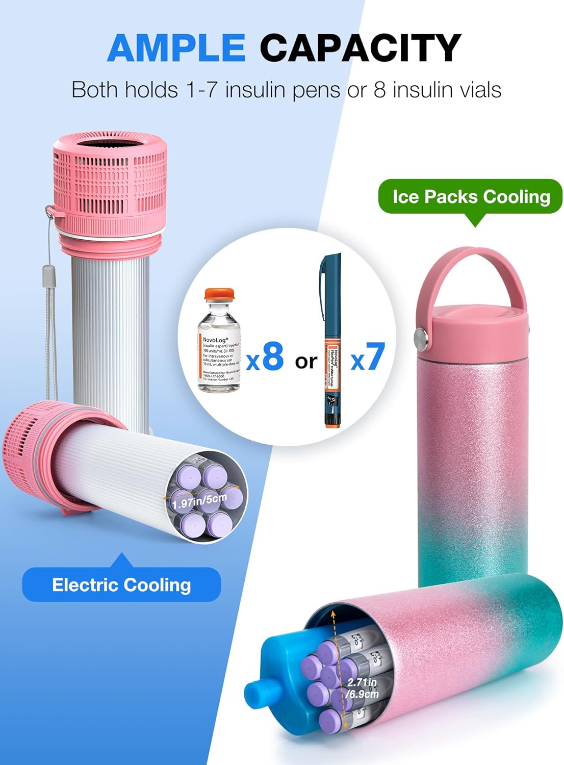 - 📦 Larger Capacity & Smaller Size - Unlike other insulin organizer, the YOUSHARES diabetic travel case has more space to hold up to 8 insulin vials or 1-7 insulin pens or other medications. It measures only 2.9 x 2.9 x 10.2 in and can be easily held in one hand. Comes with a portable backpack and 90-degree charging cable for more convenient travel!